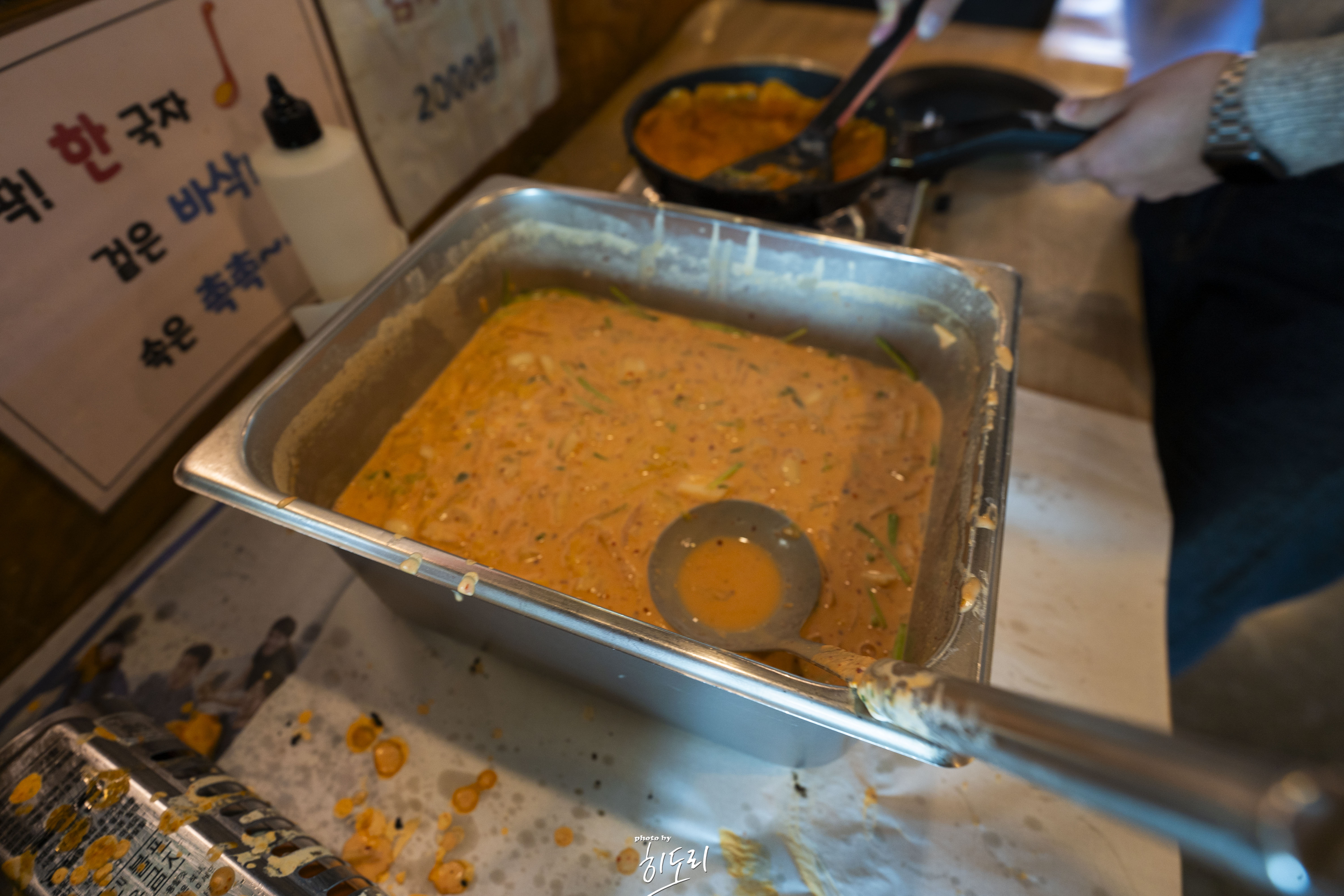 주문을 하고 기다리는동안 김치전을 셀프로 만들어 드실수가 있어요.
