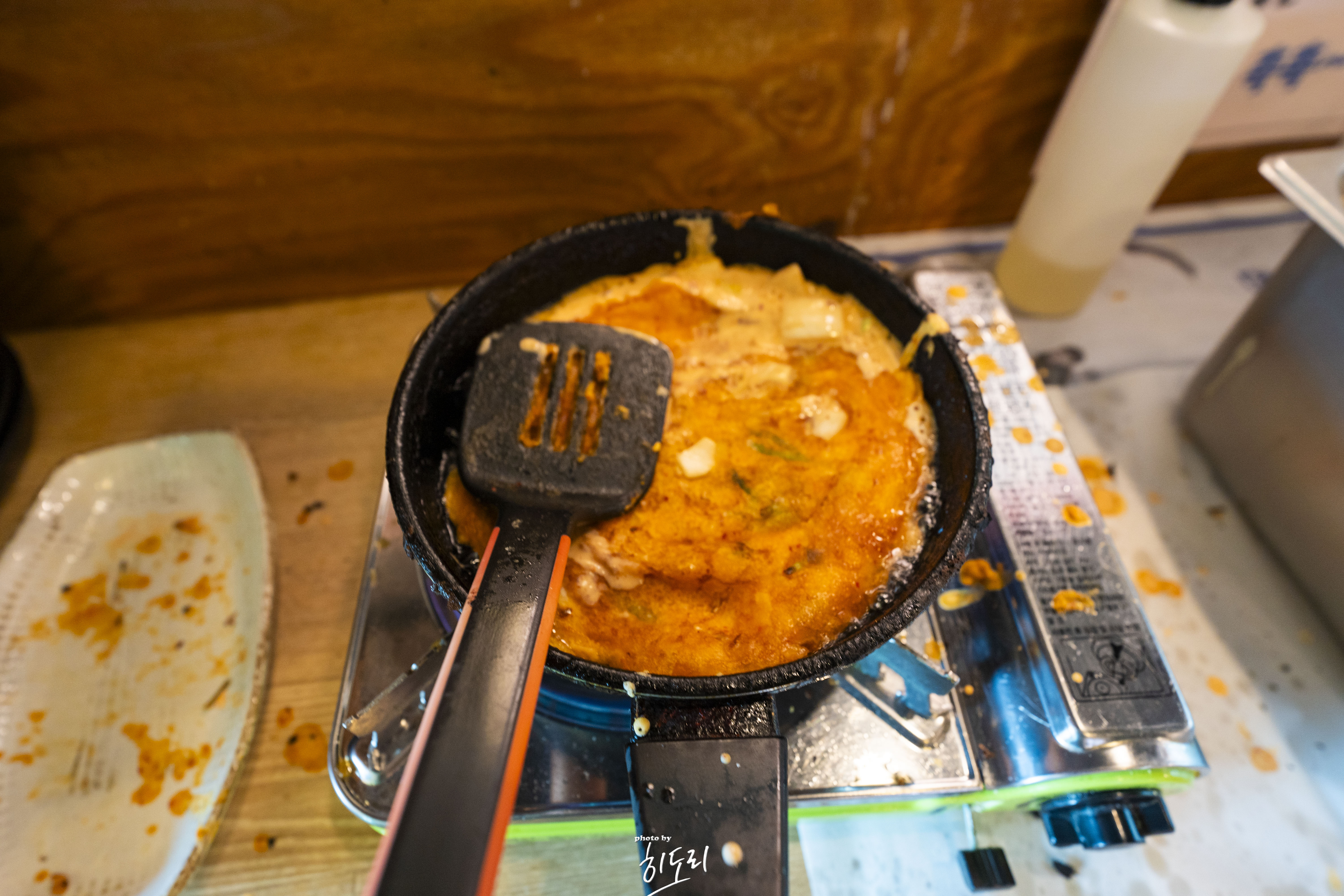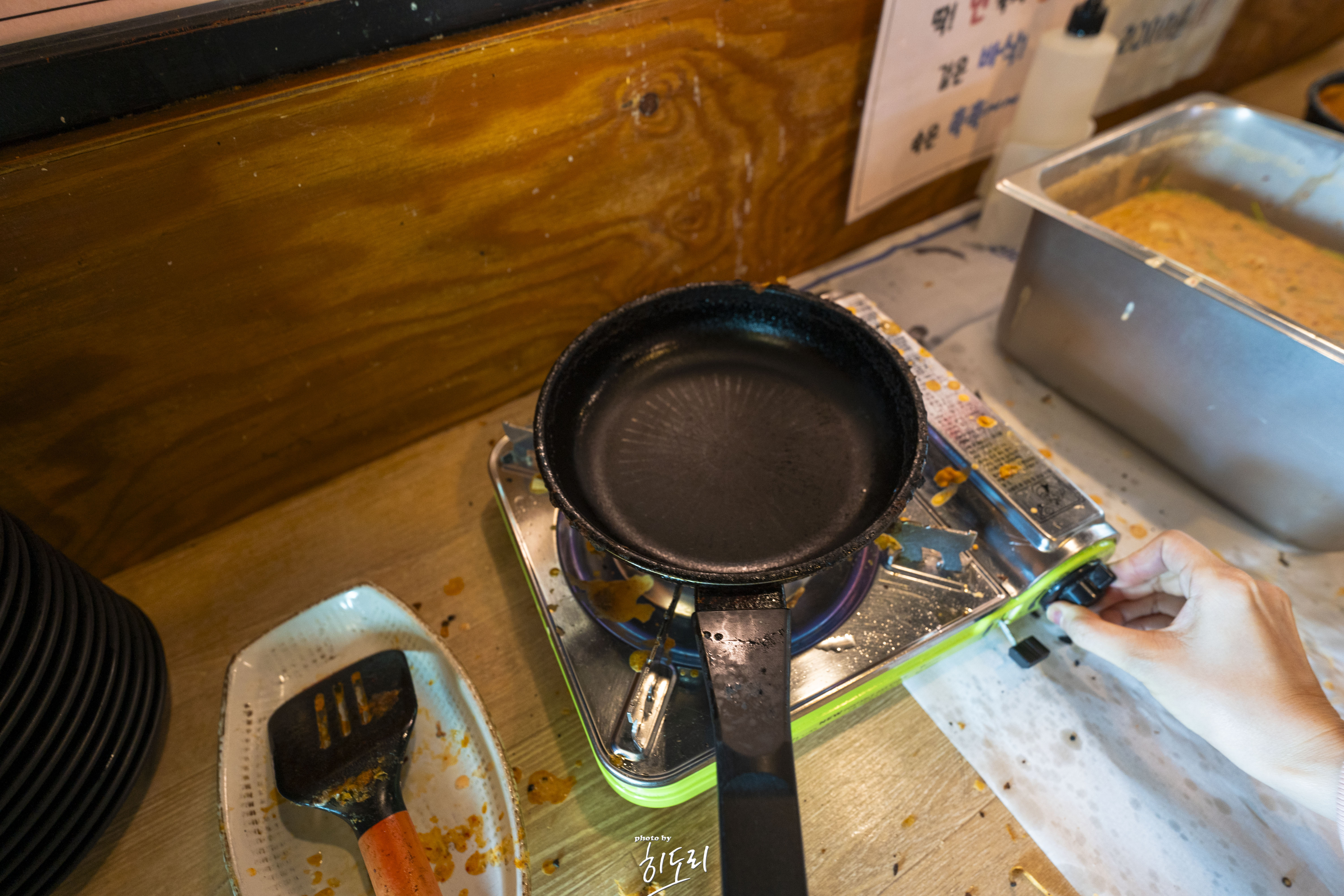 주문을 하고 기다리는동안 김치전을 셀프로 만들어 드실수가 있어요.