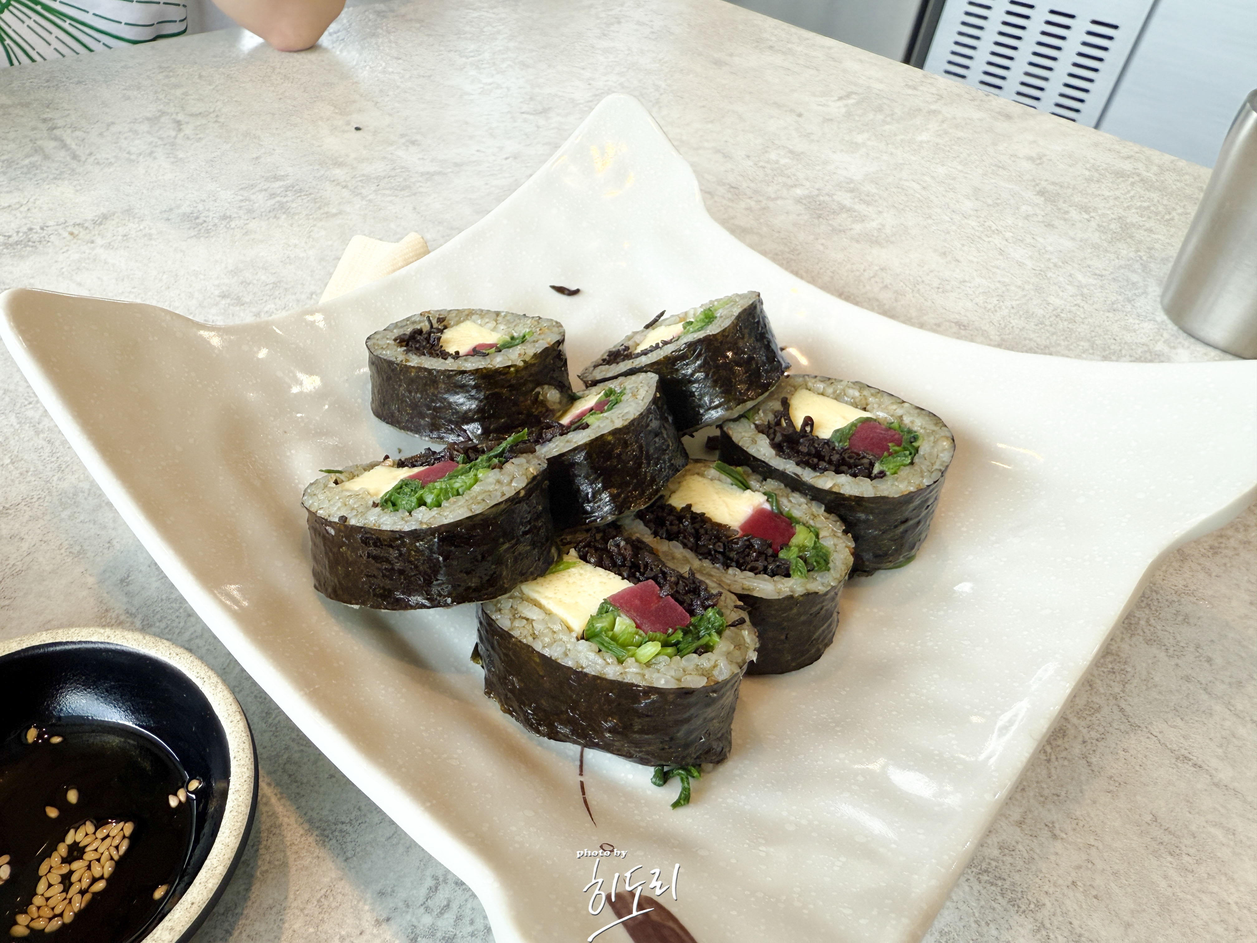 톡톡 씹히는 톳 특유의 식감이 김밥 속에서 살아있어 씹는 재미가 있었고, 바다 내음도 살짝 느껴져서 일반 김밥과는 차원이 달랐어요.