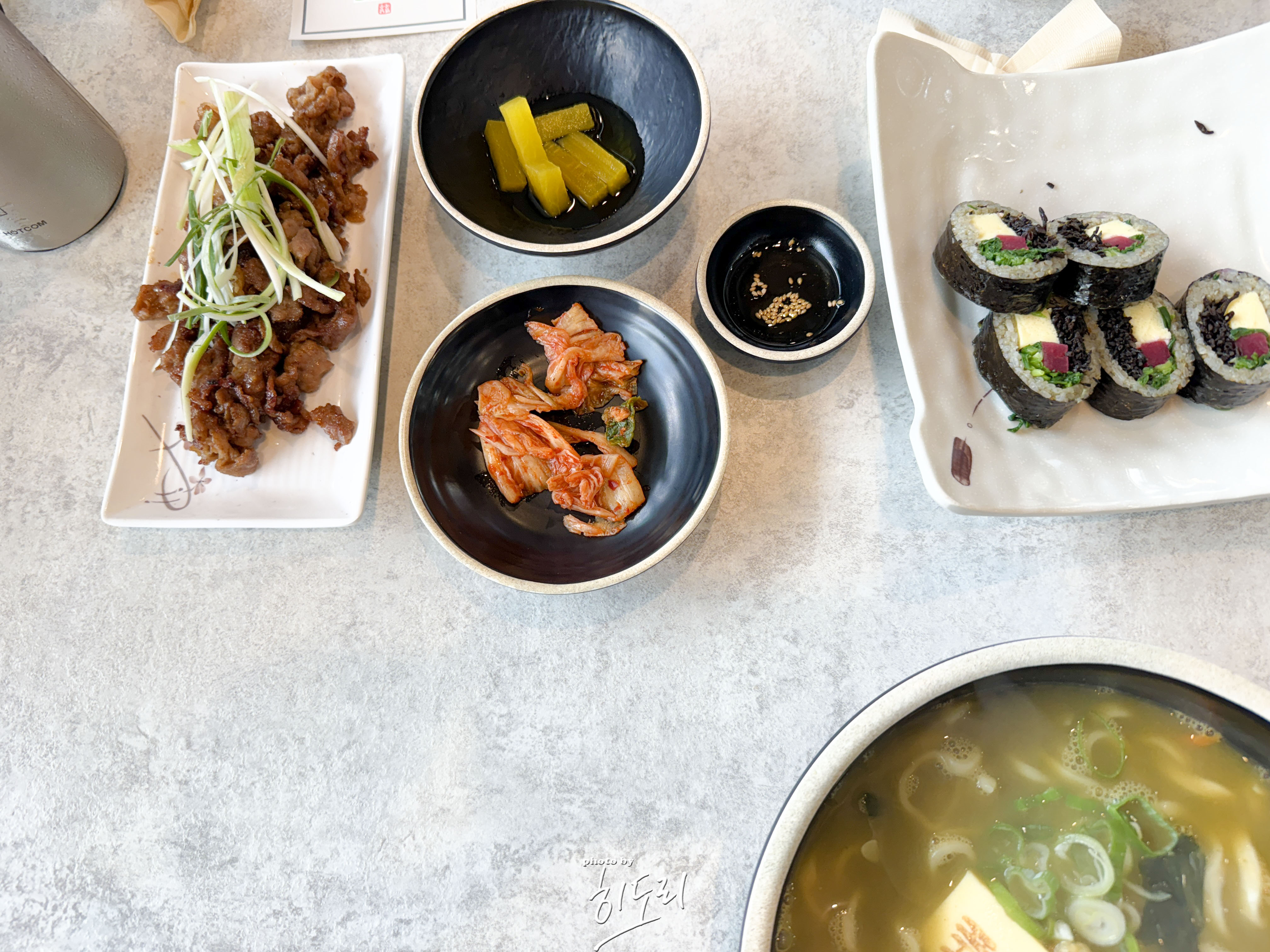 특히, 참기름 소스가 함께 나오는데 김밥을 찍어 먹으면 고소함이 두 배! 국수와 같이 먹으니 궁합이 너무 잘 맞더라고요 👍