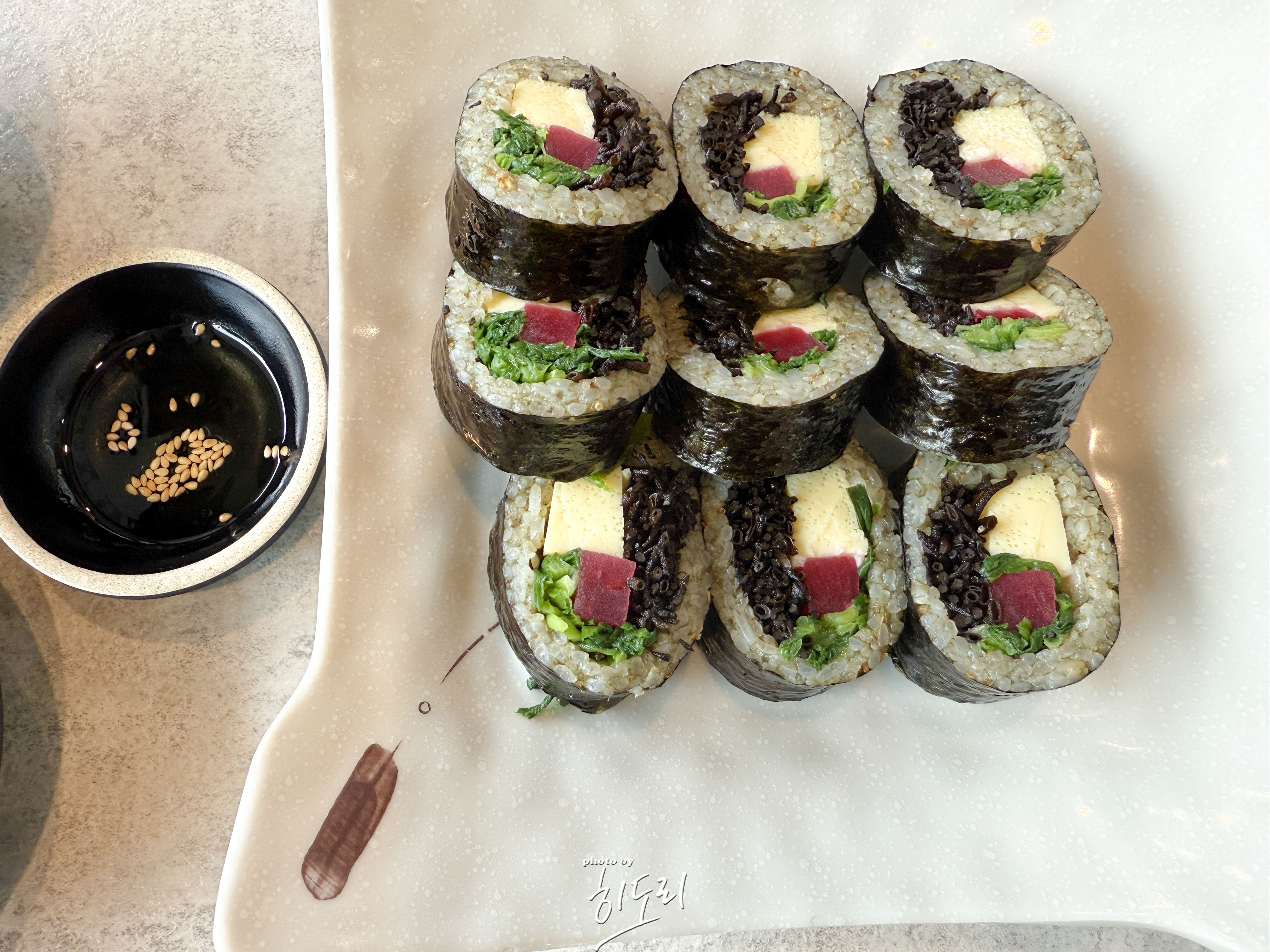 톡톡 씹히는 톳 특유의 식감이 김밥 속에서 살아있어 씹는 재미가 있었고, 바다 내음도 살짝 느껴져서 일반 김밥과는 차원이 달랐어요.