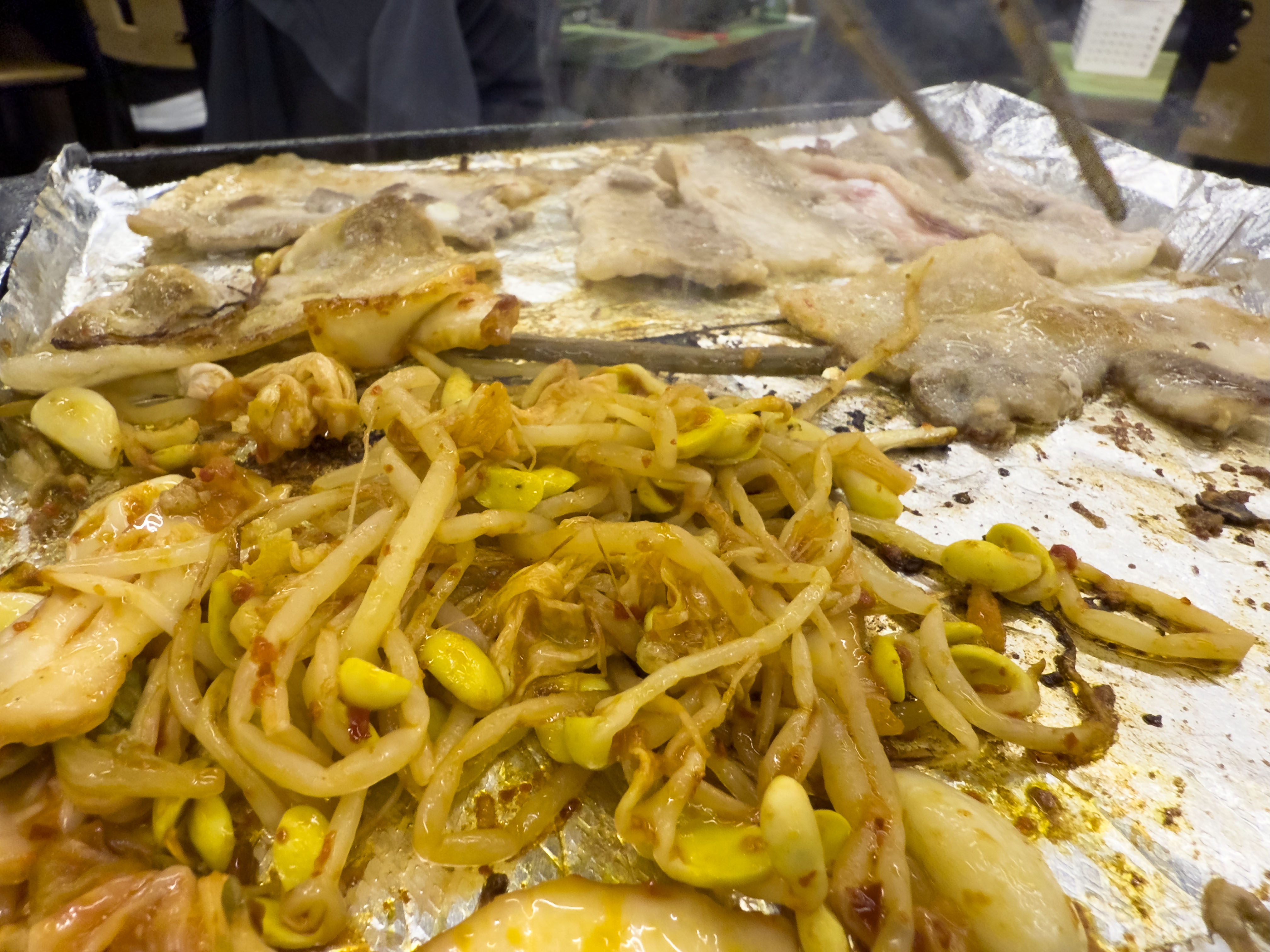 기름기에 김치도 제대로 안볶아지는것도.. 고기판에 뭔가 조치를...