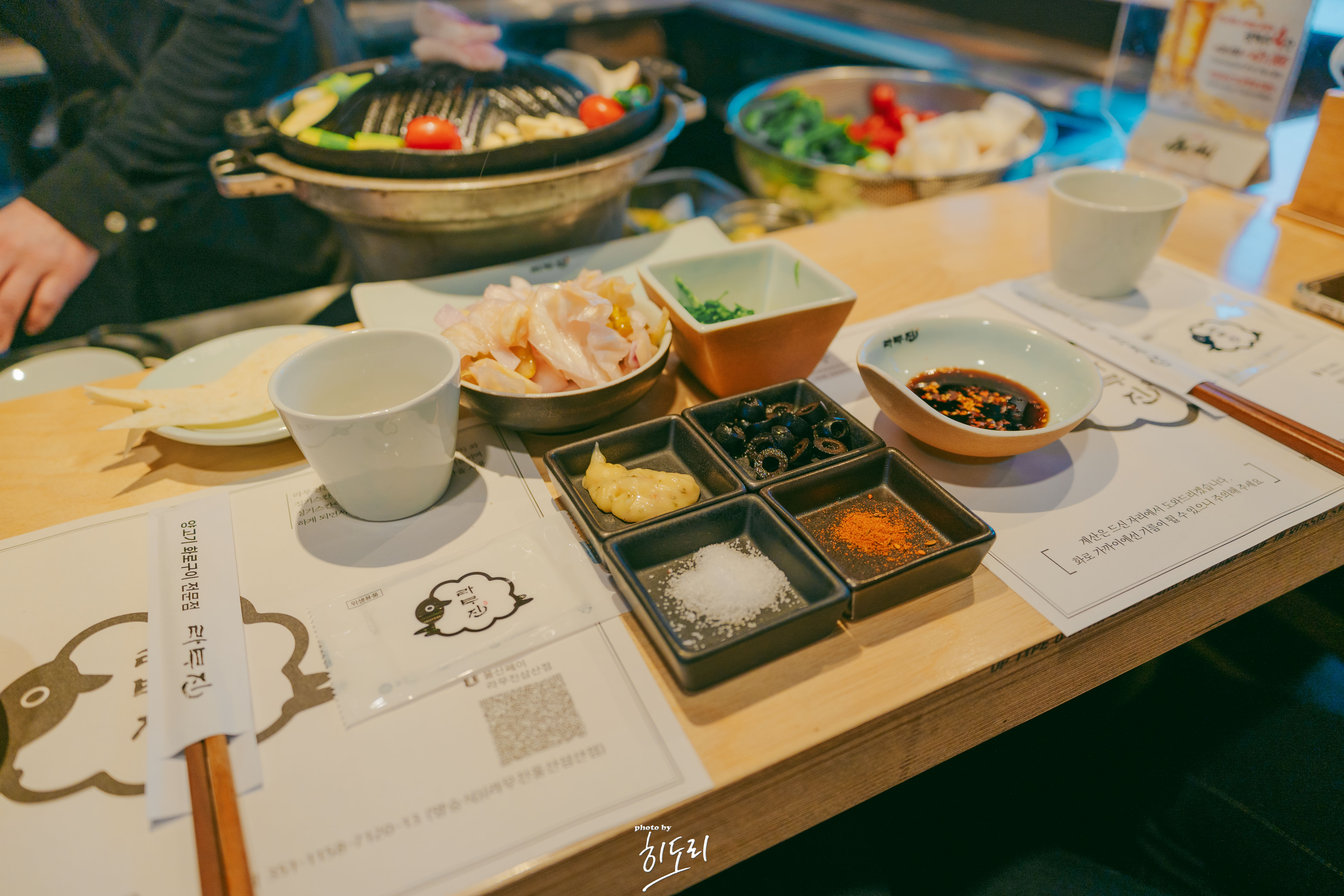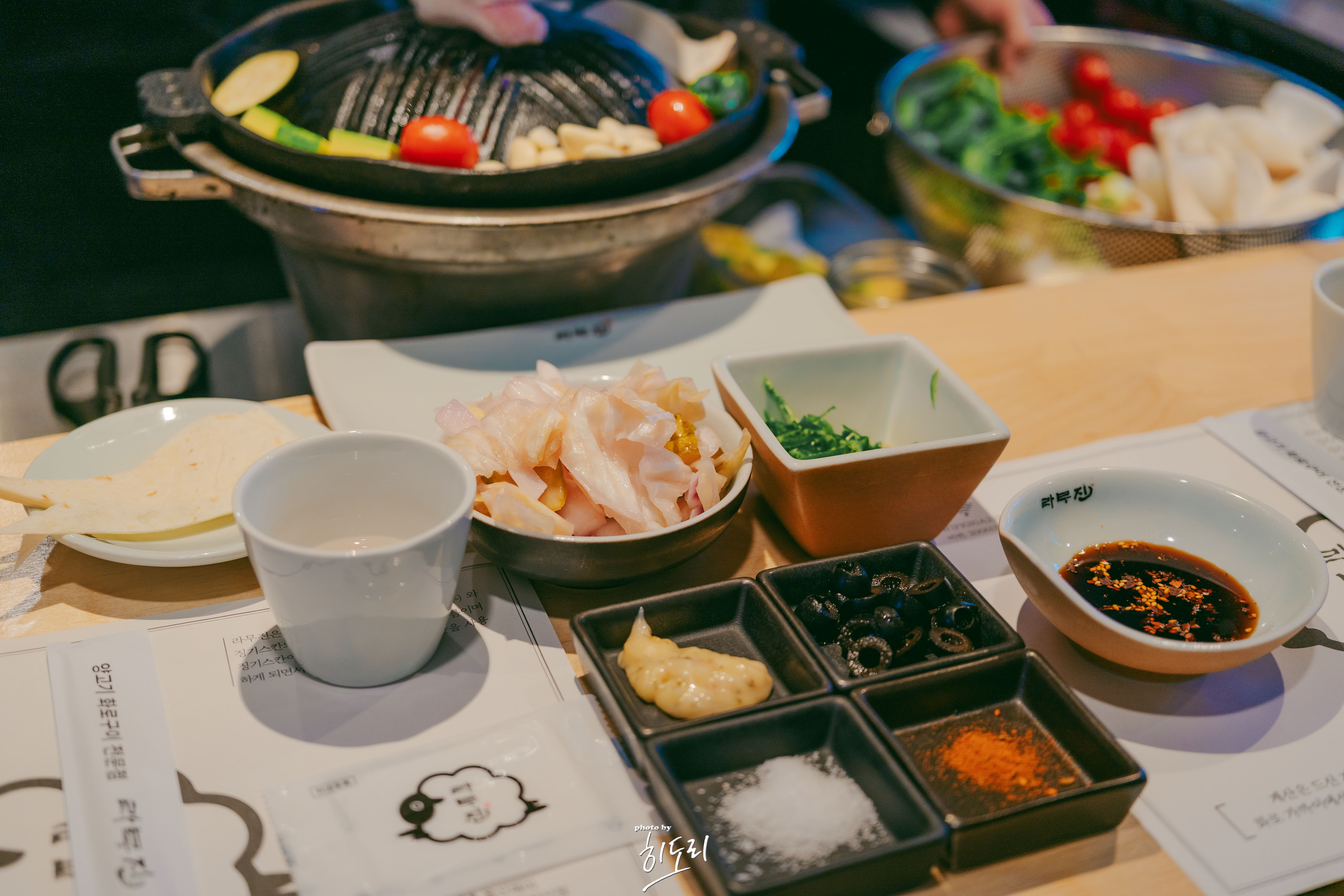 - 기본찬: 또띠아, 올리브, 양배추피클, 떙초, 간장소스, 말돈/안데스 소금 등