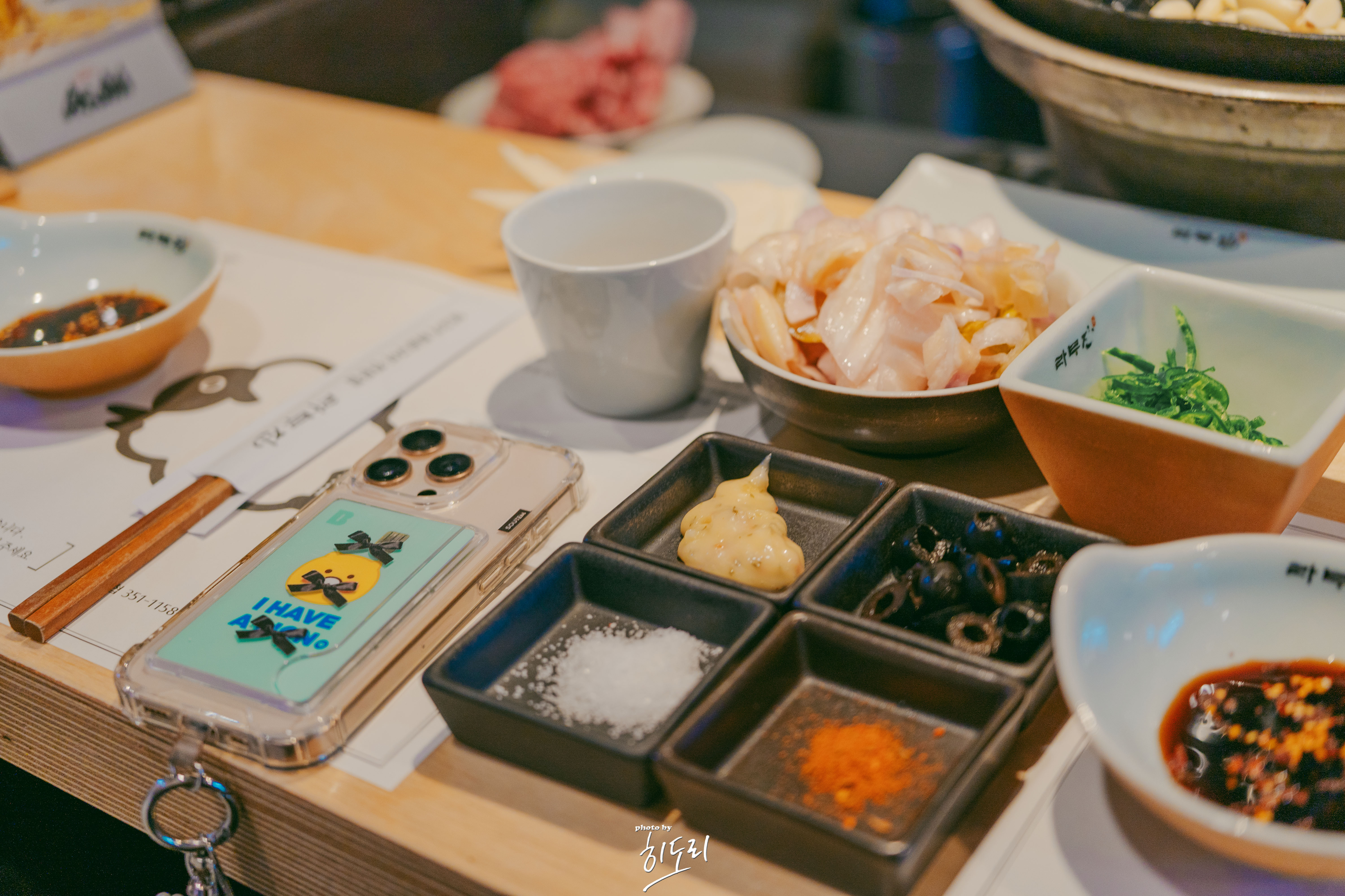 - 기본찬: 또띠아, 올리브, 양배추피클, 떙초, 간장소스, 말돈/안데스 소금 등