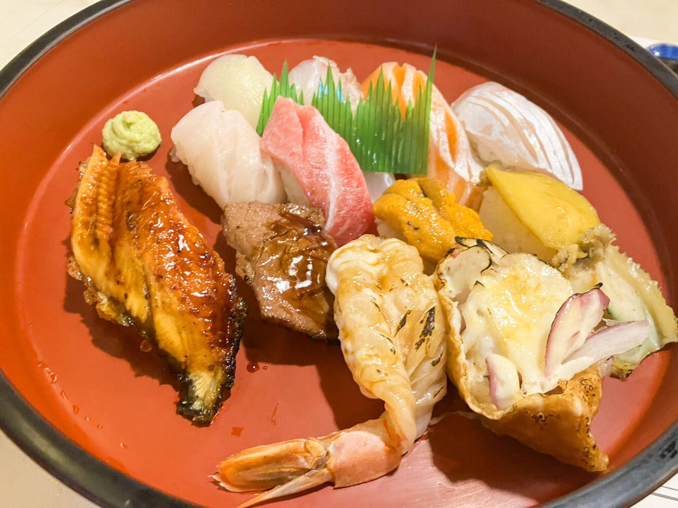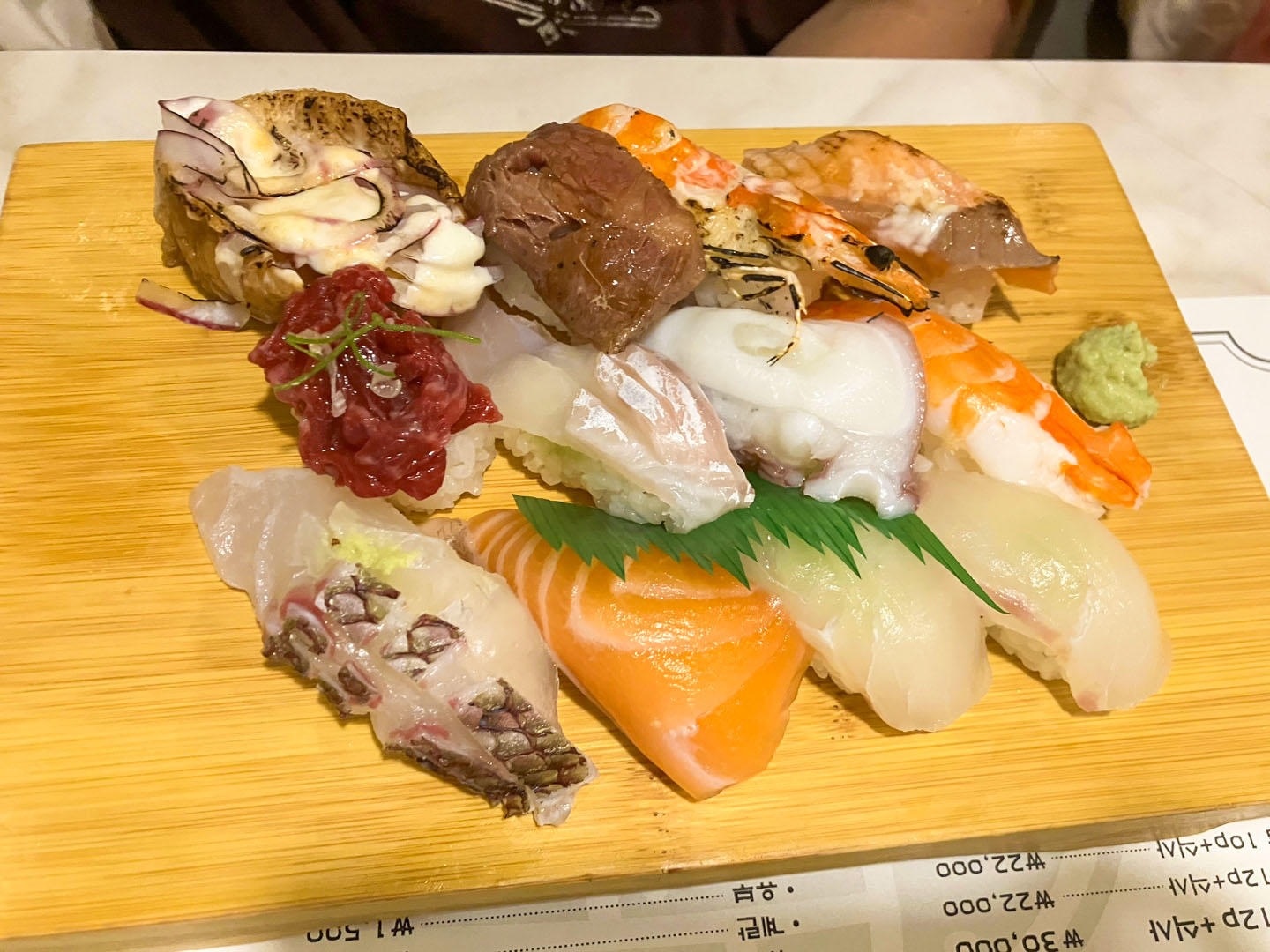 유부마요, 새우, 연어, 소고기, 광어 등 다양하게 나와서
