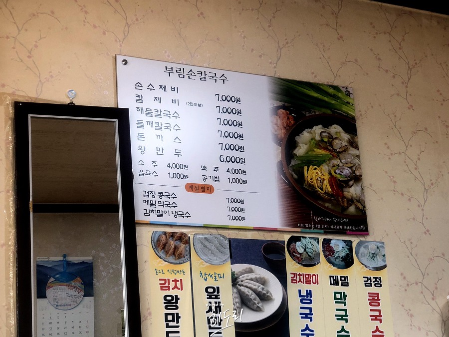 부림손칼국수 옆에는 아주 유명한 밀면집이 있죠. 저는 그 밀면집을 10년째 이용하고 있지만, 부림손칼국수는 이번에 처음 알게 되었습니다. SNS 상의 맛집을 믿고 거르는 편인데, 바로 집 앞이라 방문을 해보았습니다.