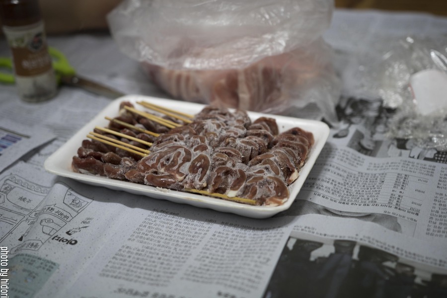 삼겹살만으로는 부족하다 싶었는지, 염통꼬지까지 준비해주셨어요. 역시 센스 만점! 이 염통꼬지는 울산 남구청 부근의 총각네고깃집에서 구입했다고 하더라고요. 고기 구입 시 서비스로 파재래기도 챙겨주는 센스까지, 정말 마음에 드는 곳이에요.