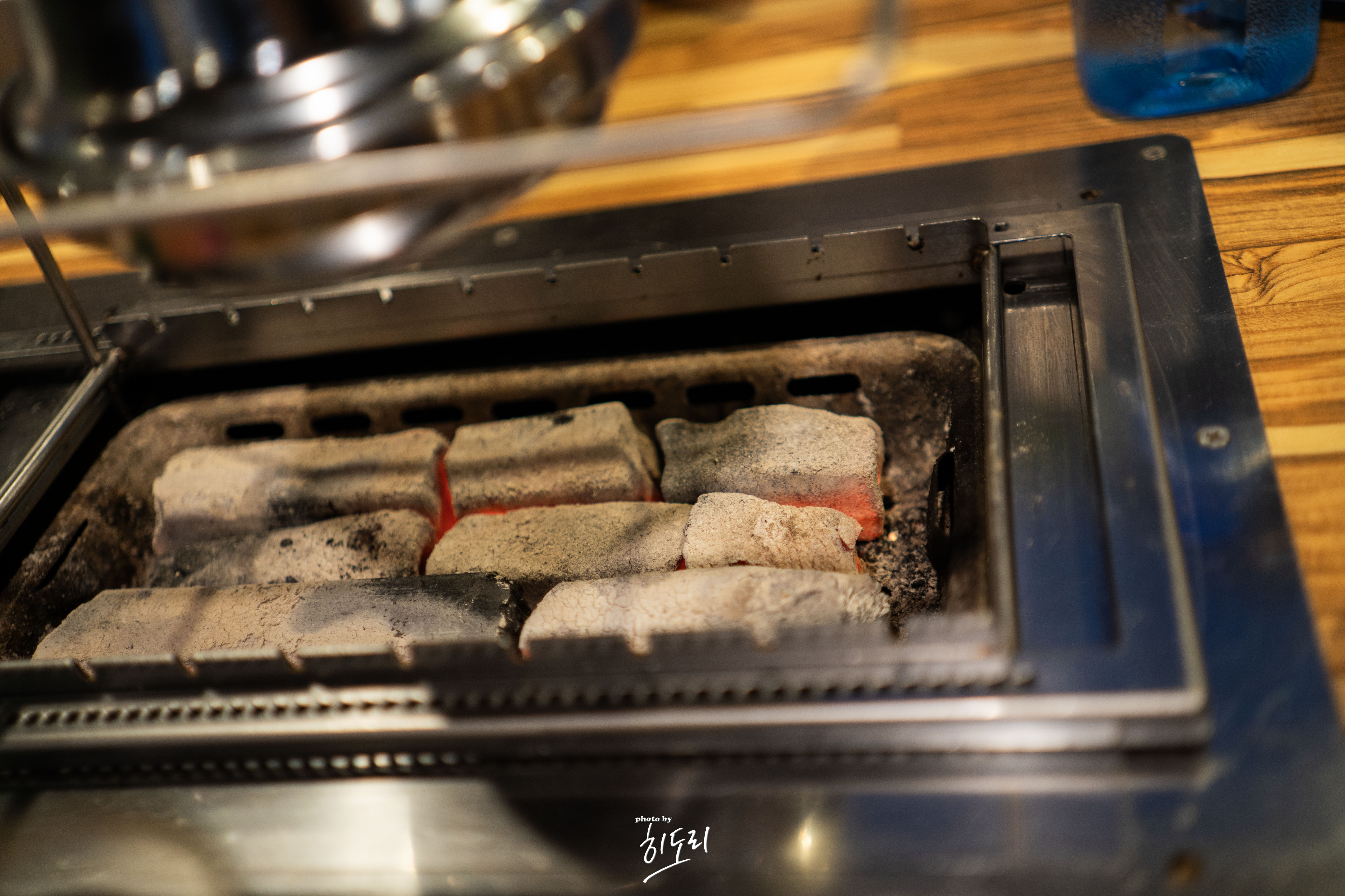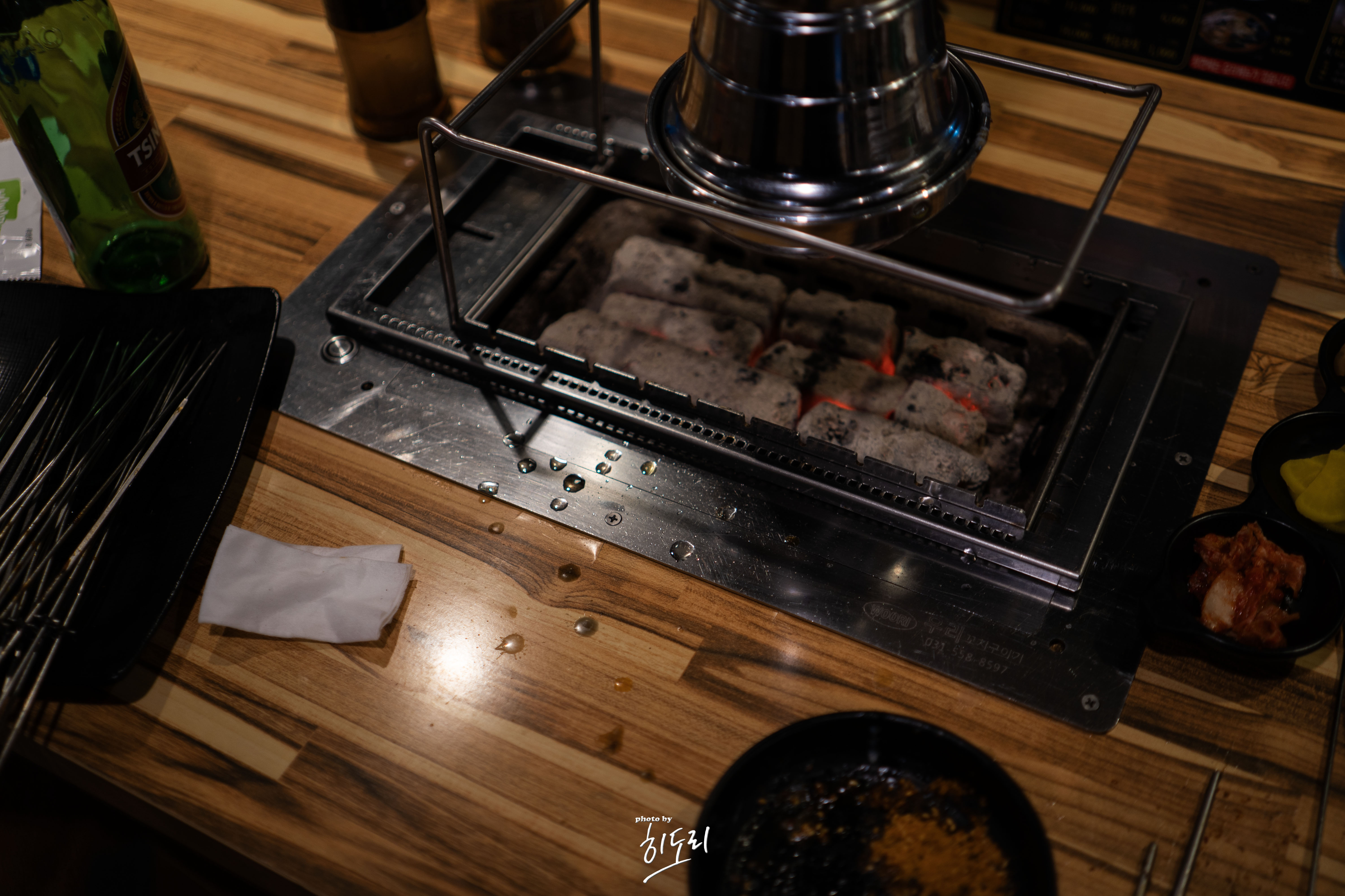안으로 들어가면 테이블마다 자동 회전 꼬치구이 장비가 설치되어 있어서,