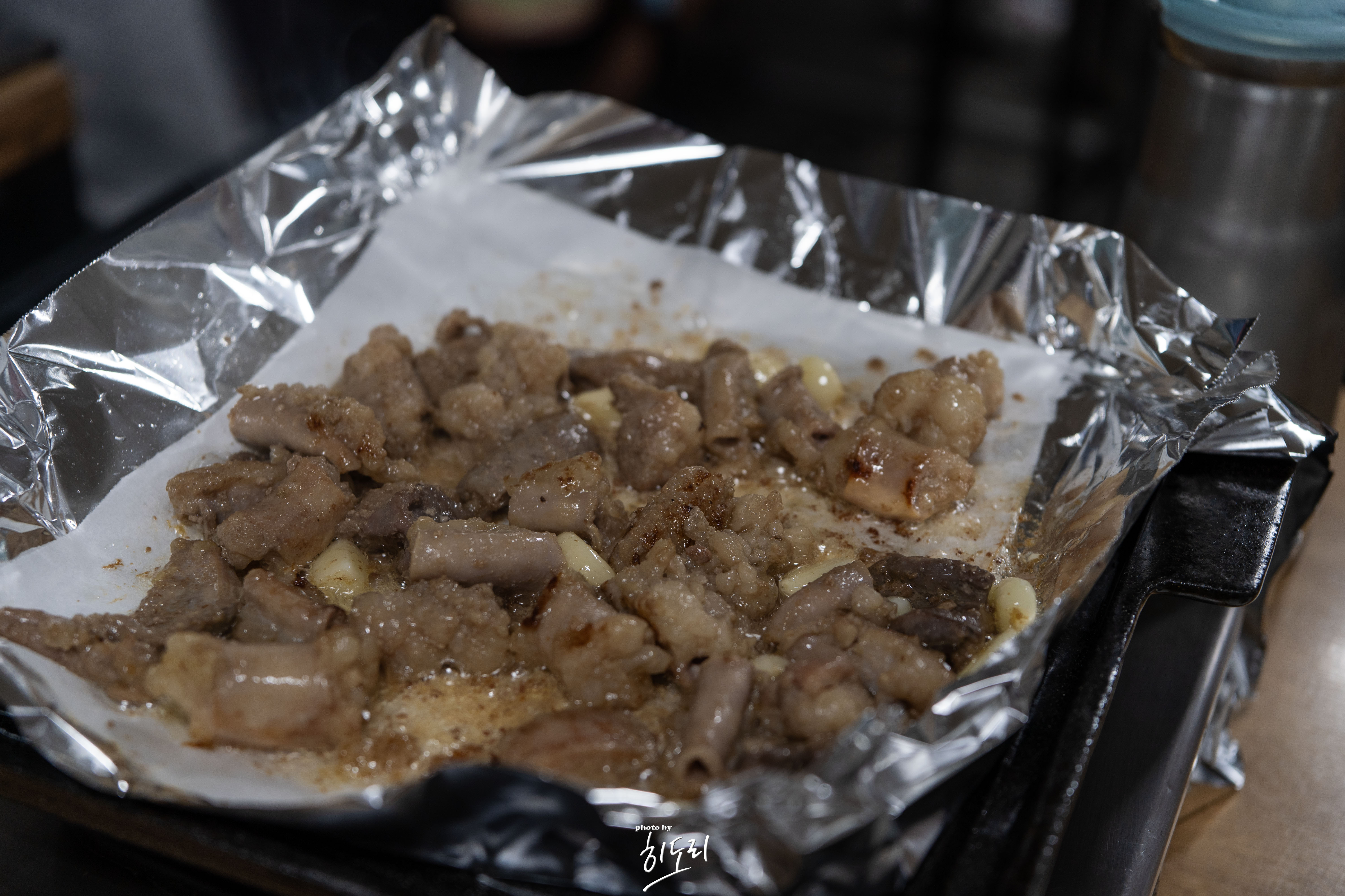 염통은 바로 먹어도 되며, 참기름장에 찍어 먹으면 고소함이 폭발해요. 곱창은 부드러우면서도 고소한 맛이 일품! 특히 곱이 아주 진하고 치즈처럼 부드러워서 입안에서 녹는 느낌이었어요. 바삭하게 익혀서 먹으니 더 맛있더라고요.