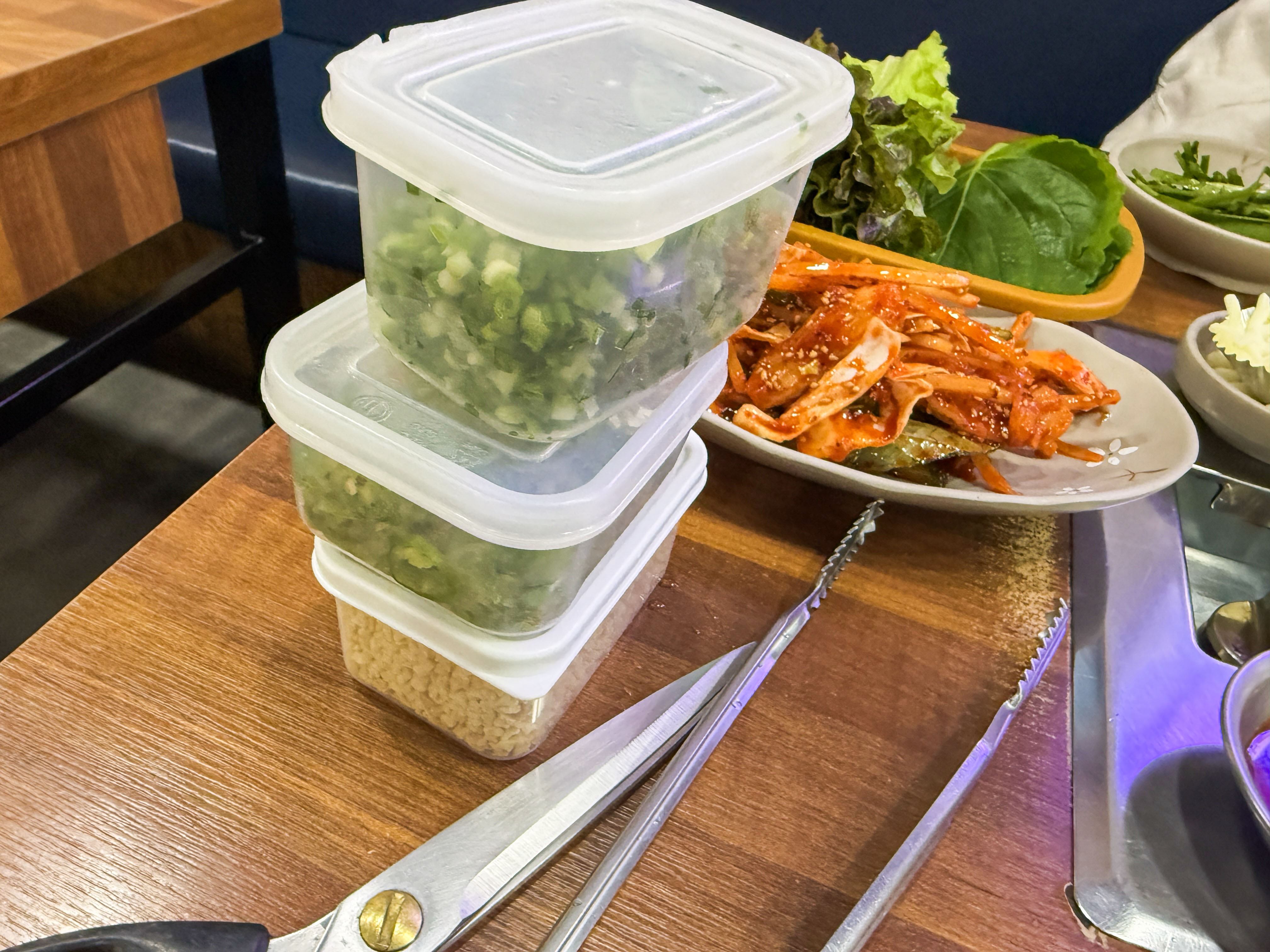 - 상추, 깻잎, 부추무침, 샐러드, 양파절임