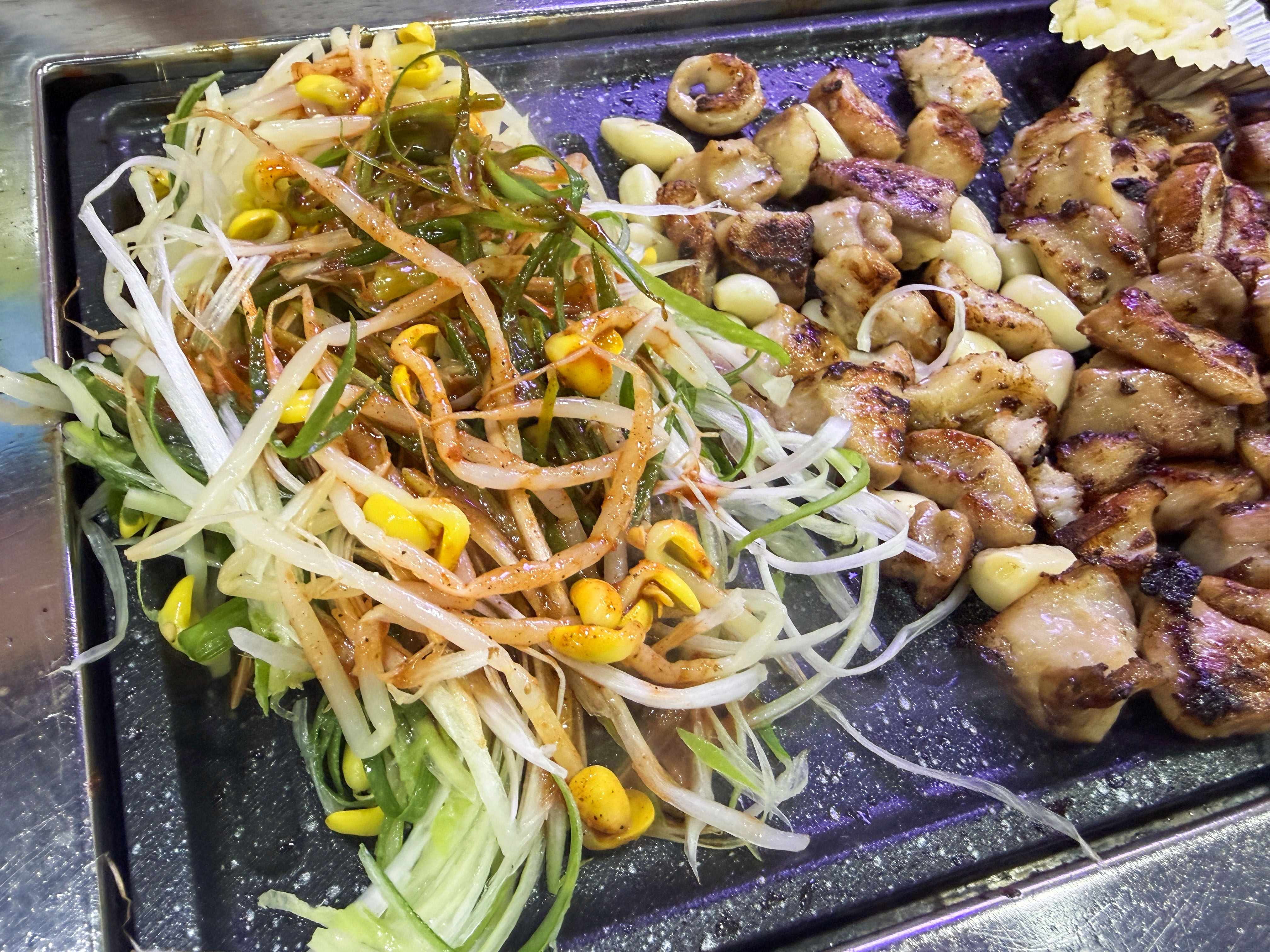 (이게 은근 별미라 막창 중간에 리셋용으로 최고✨) - 콩나물 + 파채 (이따 불판에 볶을 재료예요!)