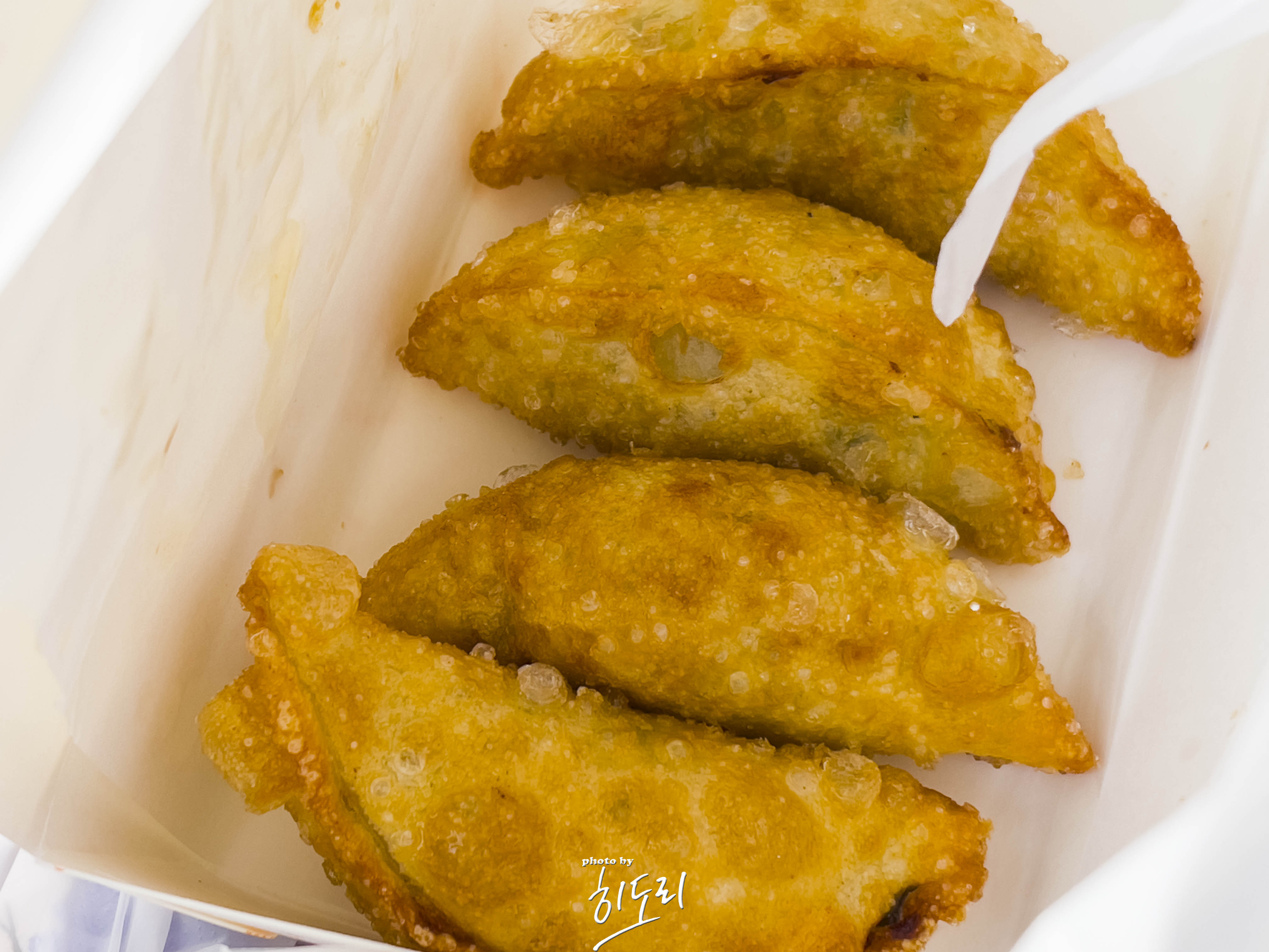 군만두 테이크아웃해서 차 안에서 먹다가