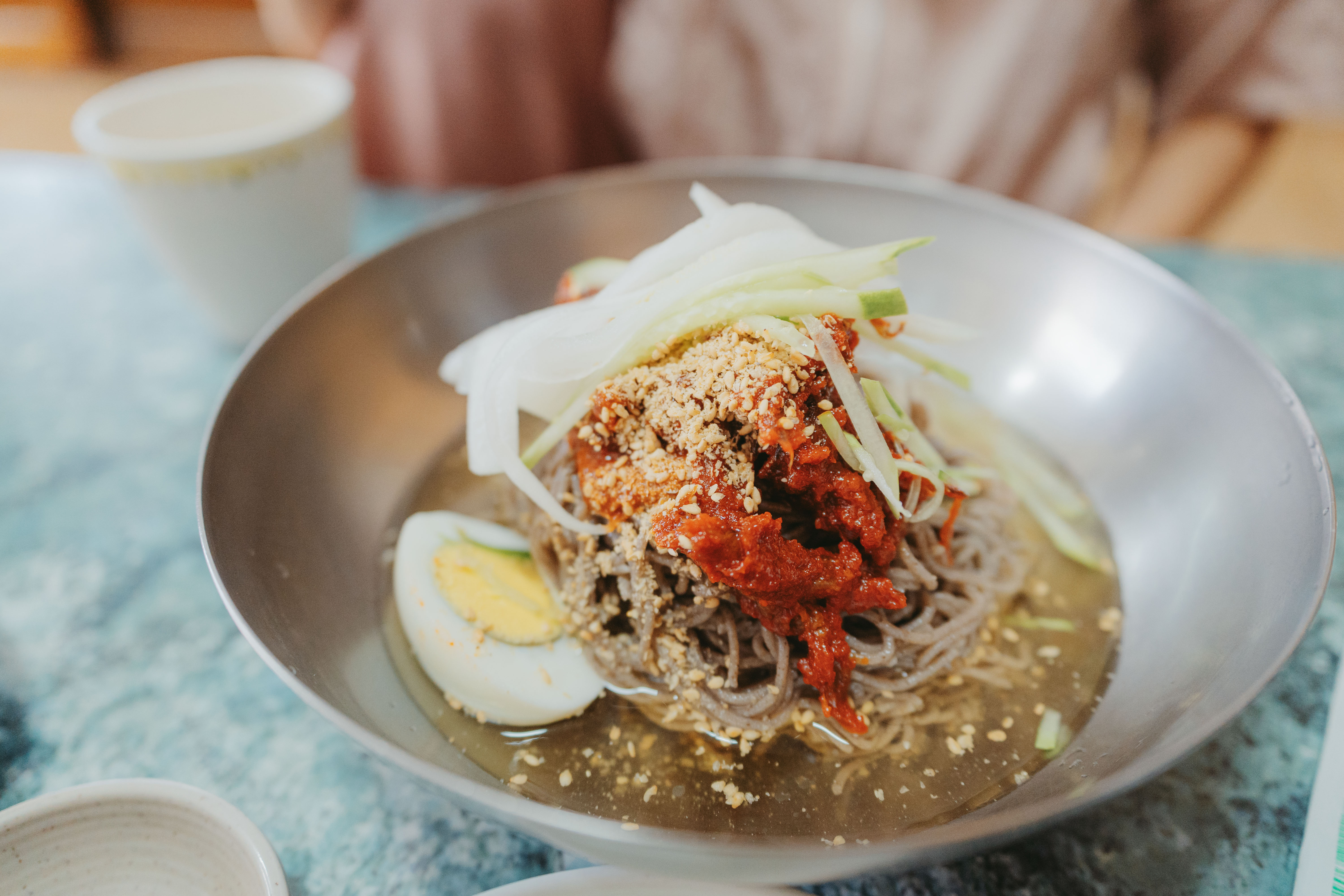 물막국수는 더운 여름에 딱 어울리는 시원한 맛이었어요. 국물은 깔끔하고 담백하면서도 은은한 감칠맛이 있어서 입맛을 확 돋워주더라구요. 고명으로 올라간 열무김치와 김가루가 국물과 조화롭게 어우러져 더 풍성한 맛을 즐길 수 있었습니다. 개인적으로는 시원하고 깔끔한 맛을 좋아하시는 분들께 강력 추천드려요!