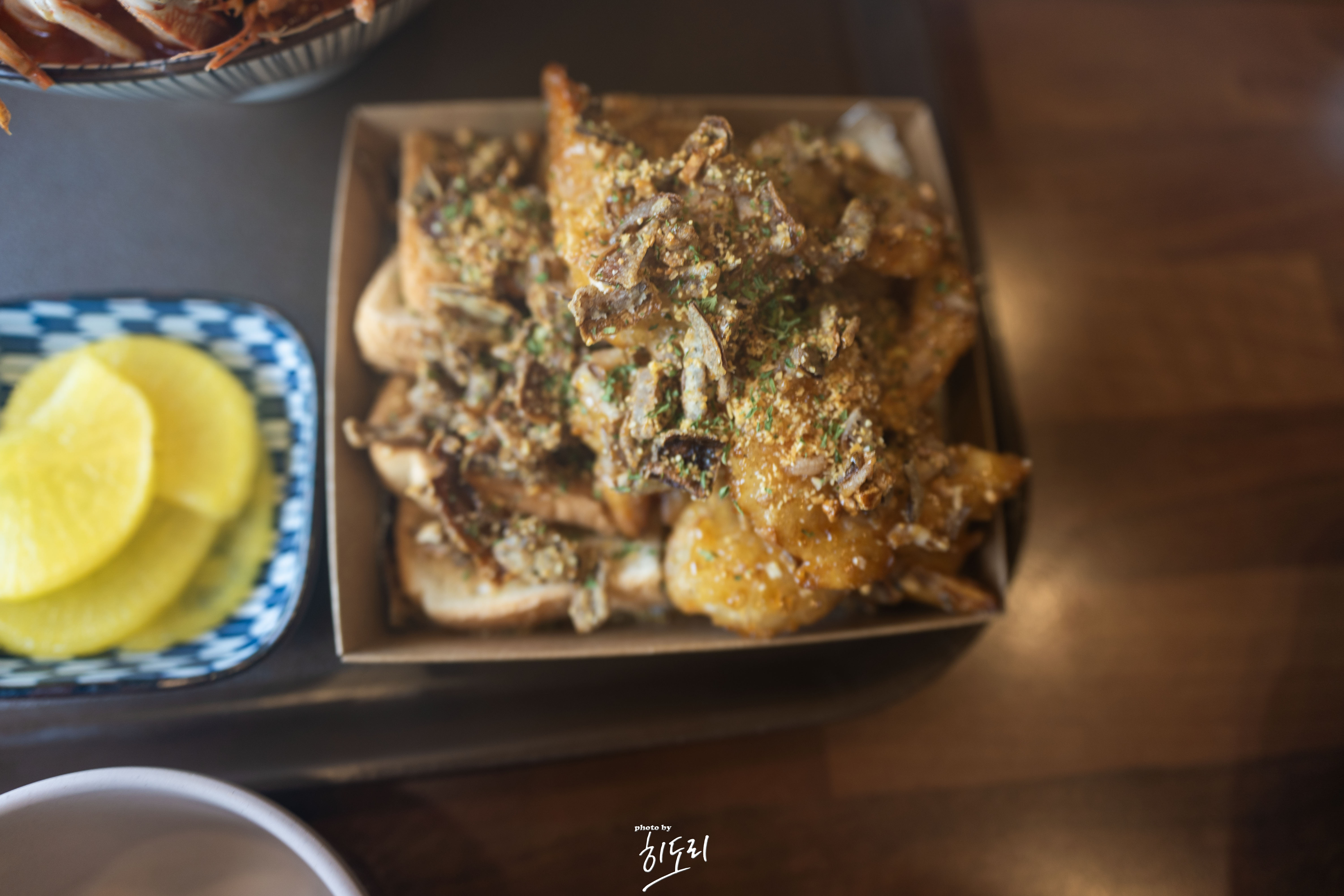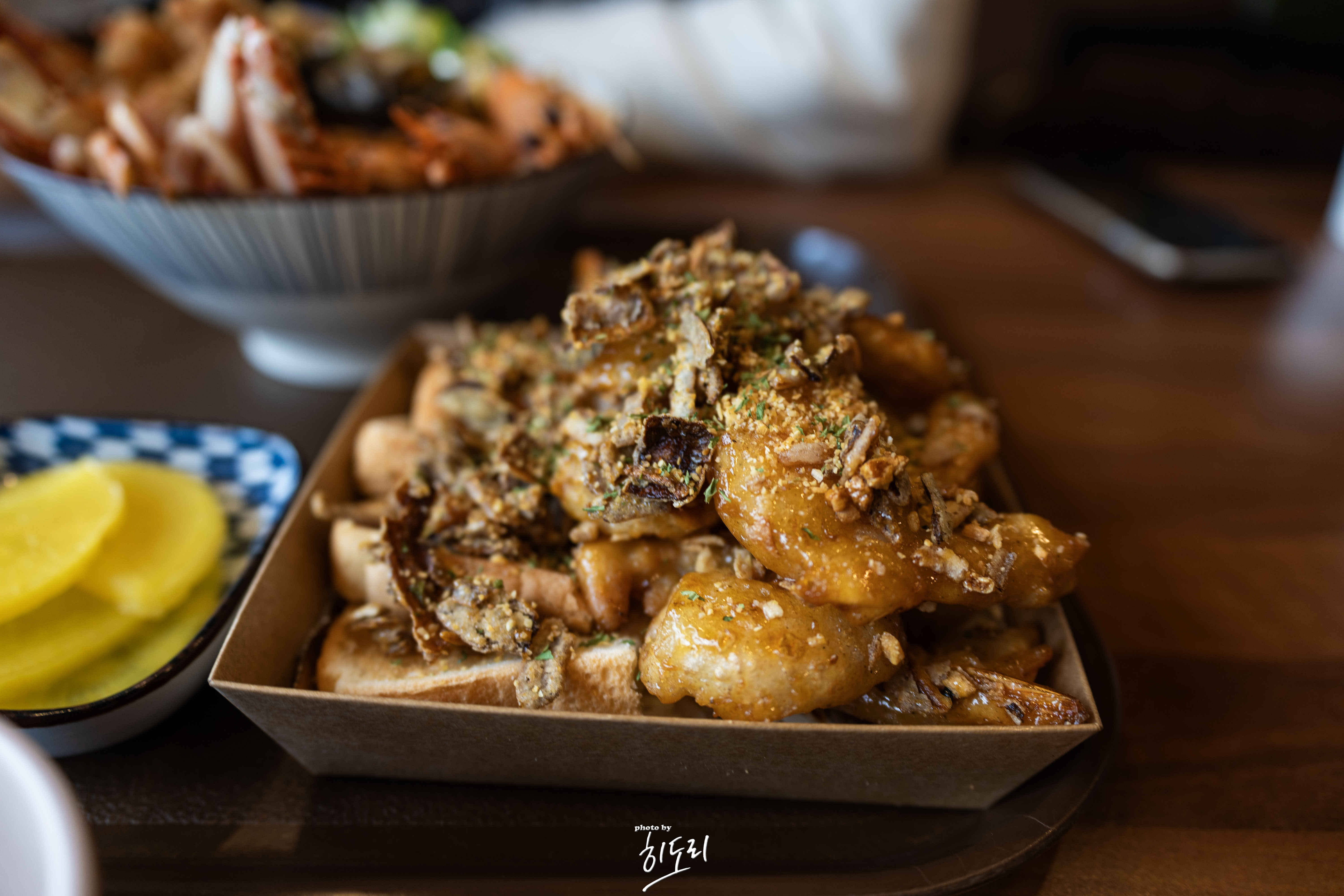이름 그대로 바삭바삭한 새우 튀김 + 갈릭칩 조합인데