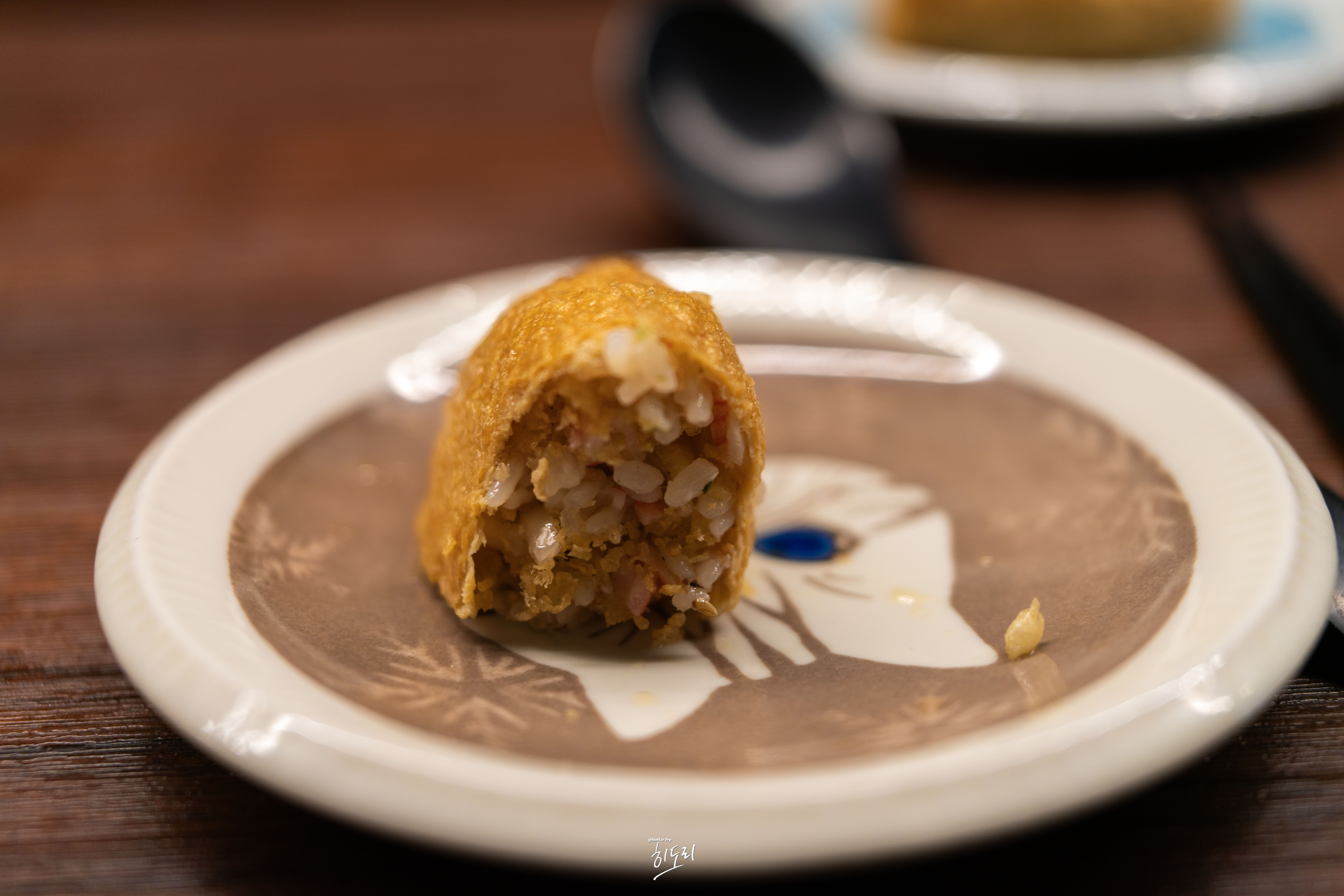 메인 메뉴가 나오기 전에 유부초밥과 고추냉이가 한 개씩 서빙됩니다. 유부초밥 안에 노란 튀김가루가 들어 있어 고소한 맛과 바삭한 식감을 더해줍니다. 어디서도 먹어보지 못한 최고의 유부초밥이었습니다. 진짜 우동미에서 개인적으로 가장 맛있게 먹었던 음식 입니다. 정말 맛있어요.