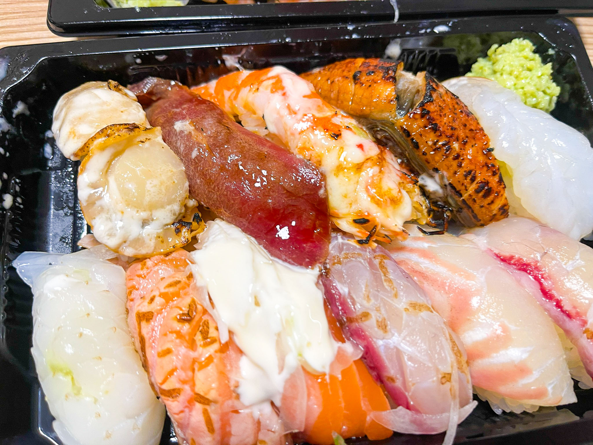 저희는 이번에 모듬초밥과 연어초밥을 주문했어요. 푸드트럭 초밥이라고 해서 기대를 크게 하지 않았는데, 정말 퀄리티가 뛰어났어요! 장어, 새우, 가리비 초밥이 인상적이었고, 연어 역시 해산물을 싫어하는 저이지만... 신선하고 맛있었습니다. 특히 통새우 초밥은 불맛이 나서 감탄하면서 먹었답니다.