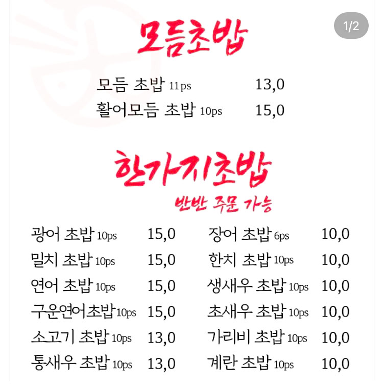 - 생새우 초밥 10피스: 10,000원