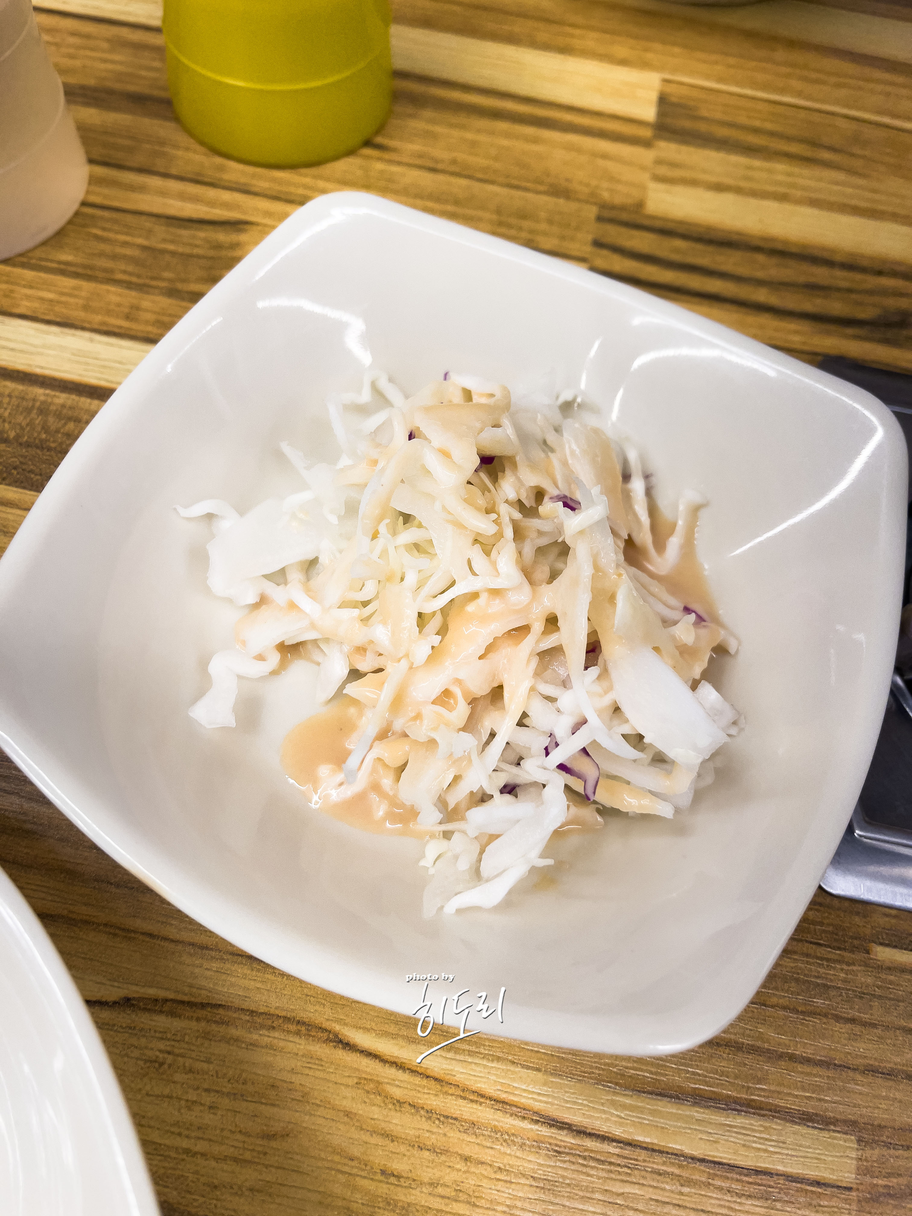 반찬은 셀프 바에서 자유롭게 리필할 수 있었고, 특히 양배추샐러드와 묵채가 정말 맛있었습니다. 묵채는 직접 내린 육수로 만든 듯한 깊은 맛이 일품이었어요.