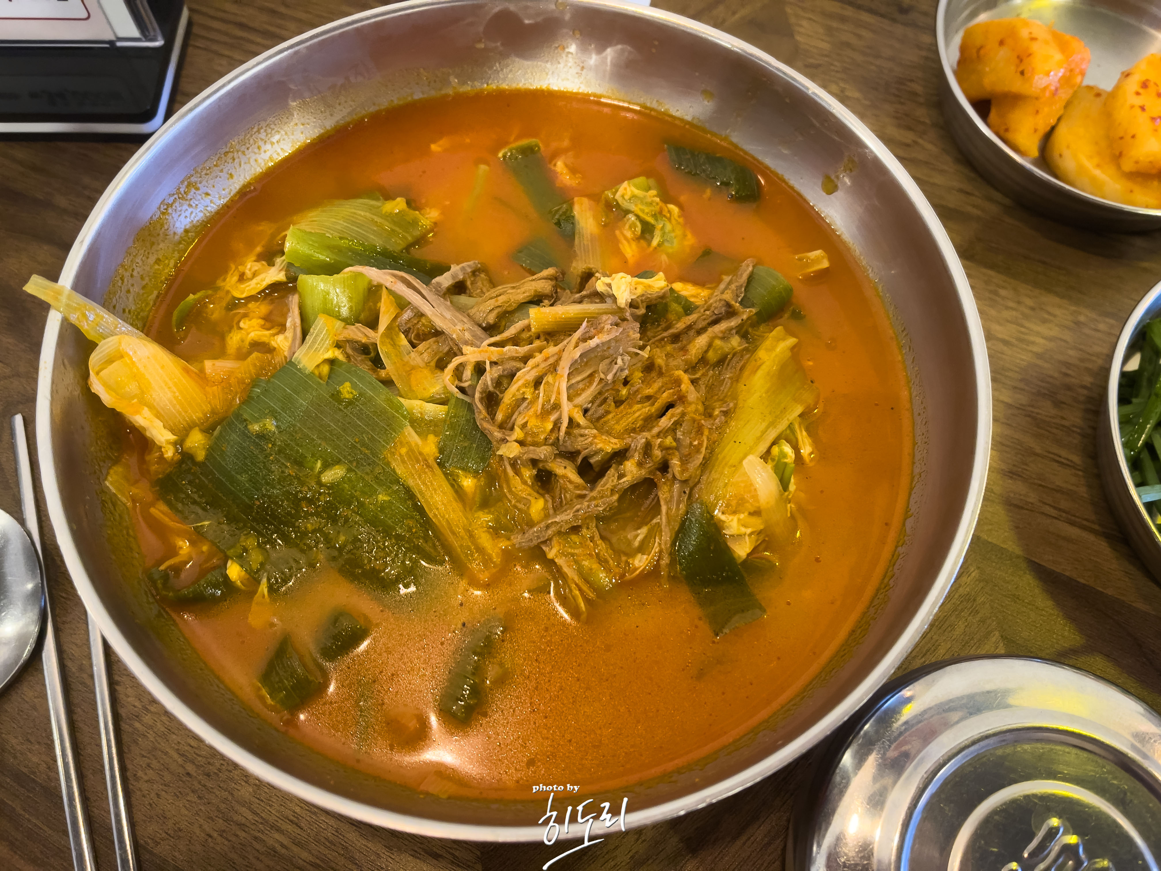 ✔ 육개장 칼국수 – 육개장의 깊고 진한 국물에 쫄깃한 칼국수 면이 더해져 든든한 한 끼로 손색없어요. 특히 매운 맛이 부담스러울 땐 면을 같이 먹으면 훨씬 부드럽고 조화로운 맛이 나서 추천해요.