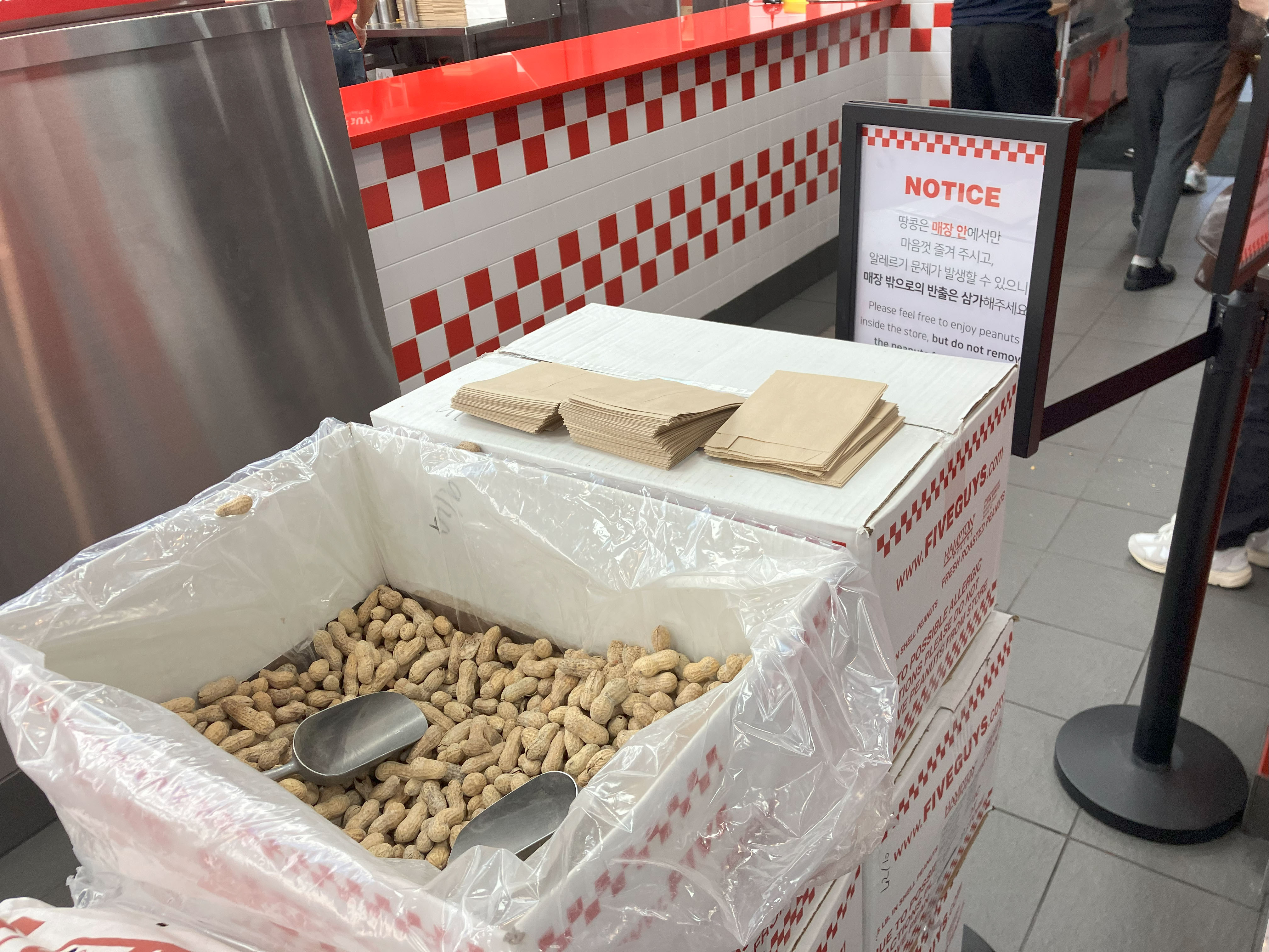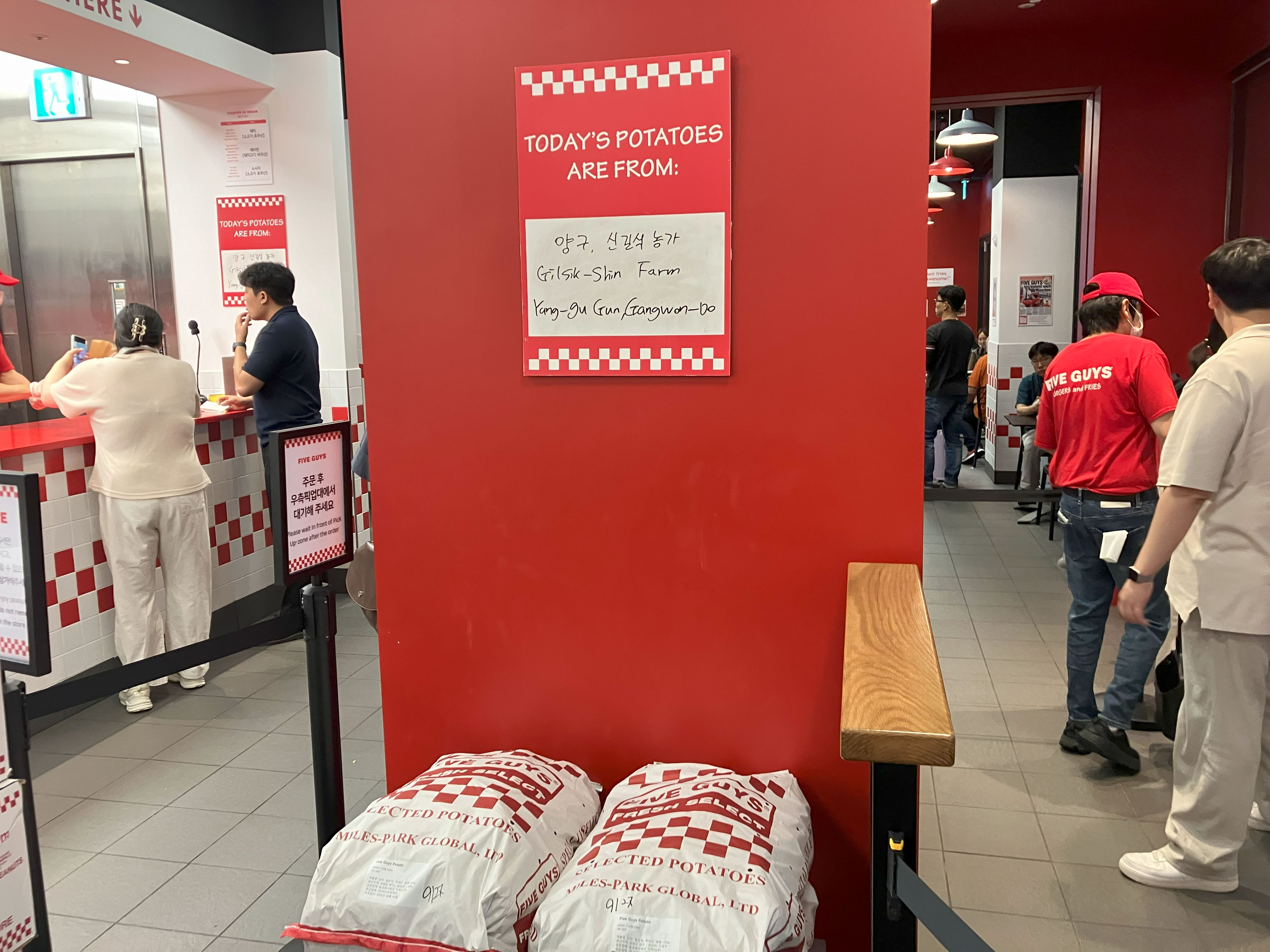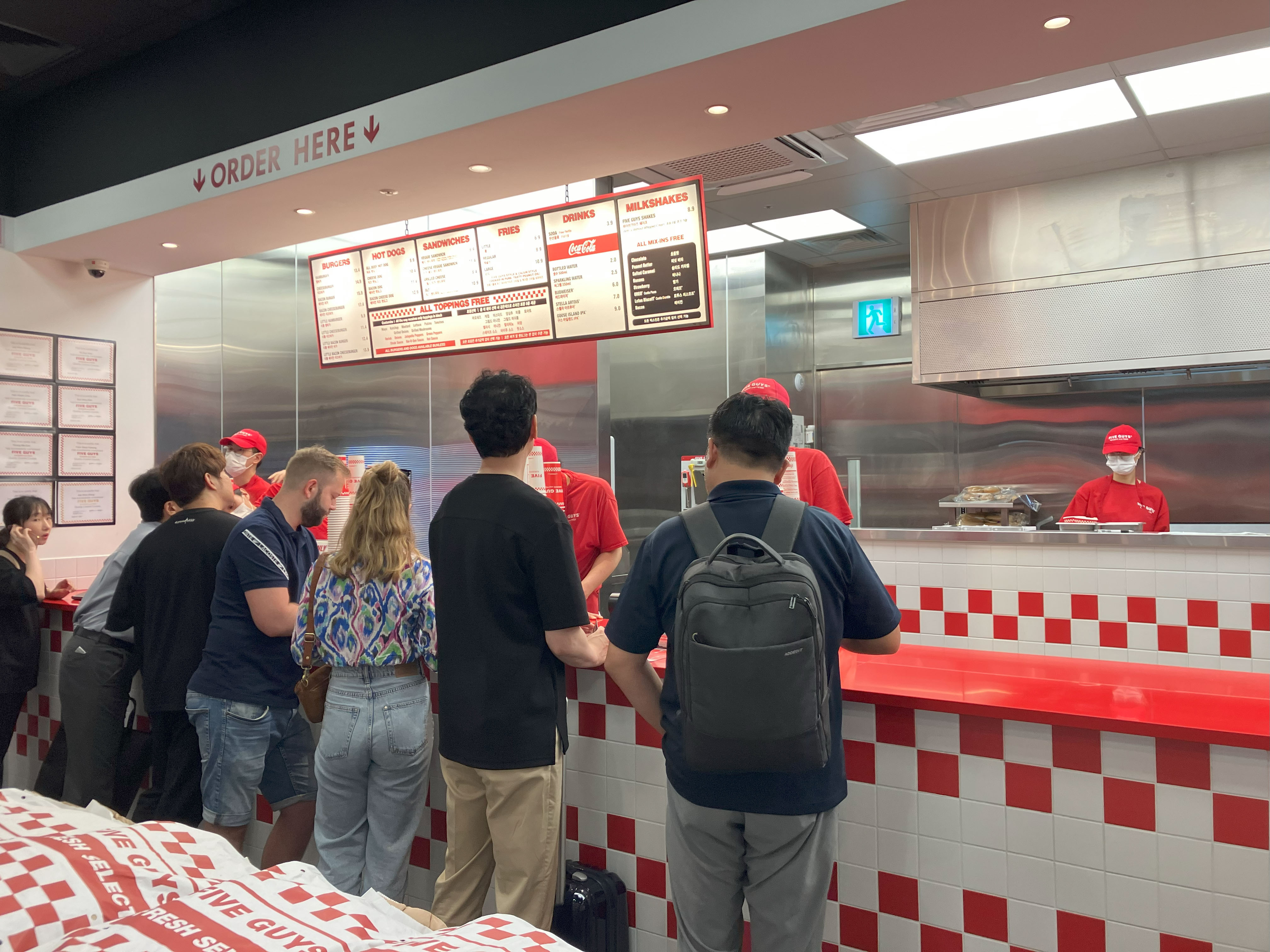 파이브가이즈에서는 먼저 주문을 마친 뒤 자리를 찾는 시스템이에요. (서울역점 기준)