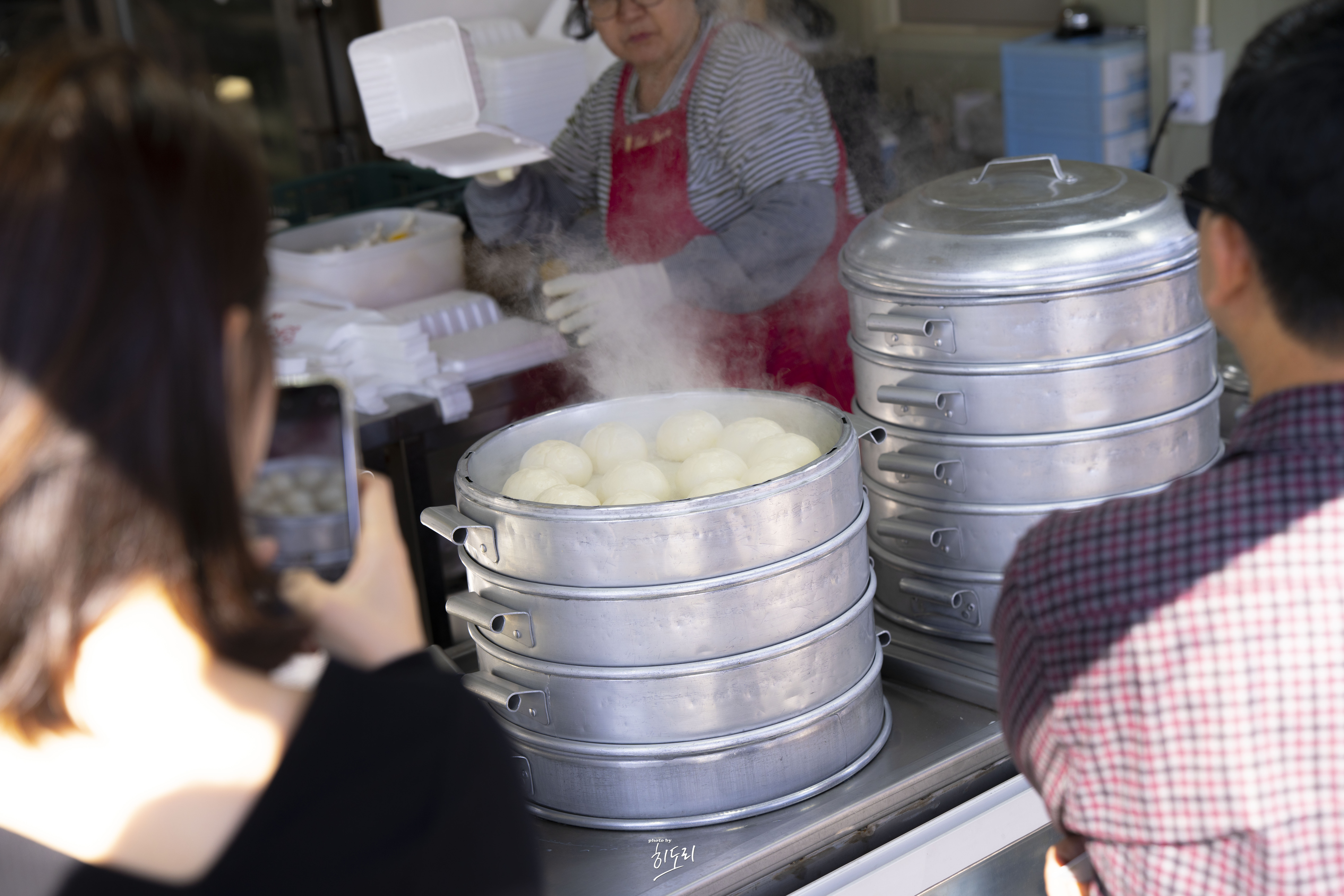가격은 모든 메뉴가 5,000원으로 동일해요. 바로 눈앞에서 쪄지는 찐빵과 만두는 인기가 많아 금방 동이 나곤 한답니다.