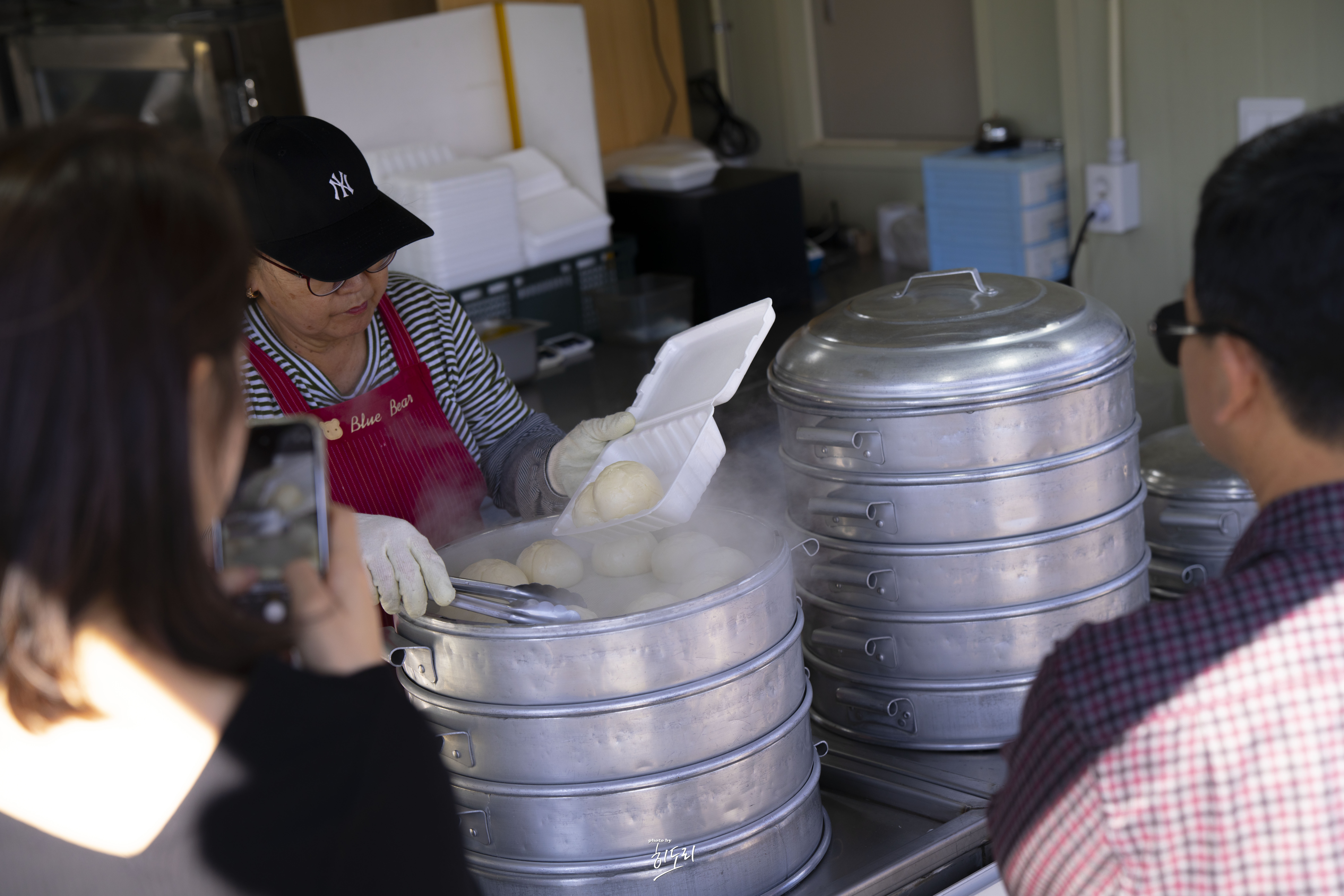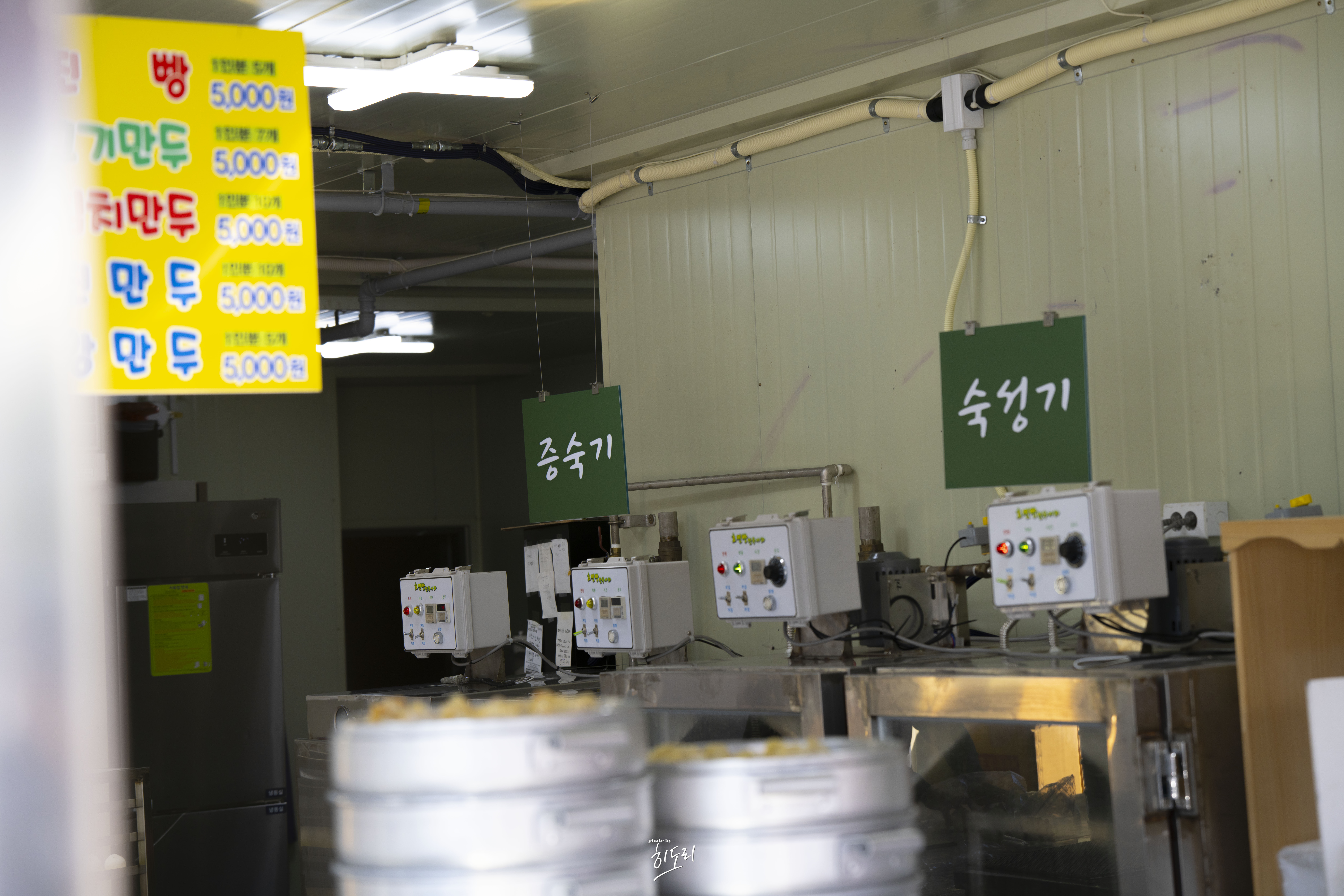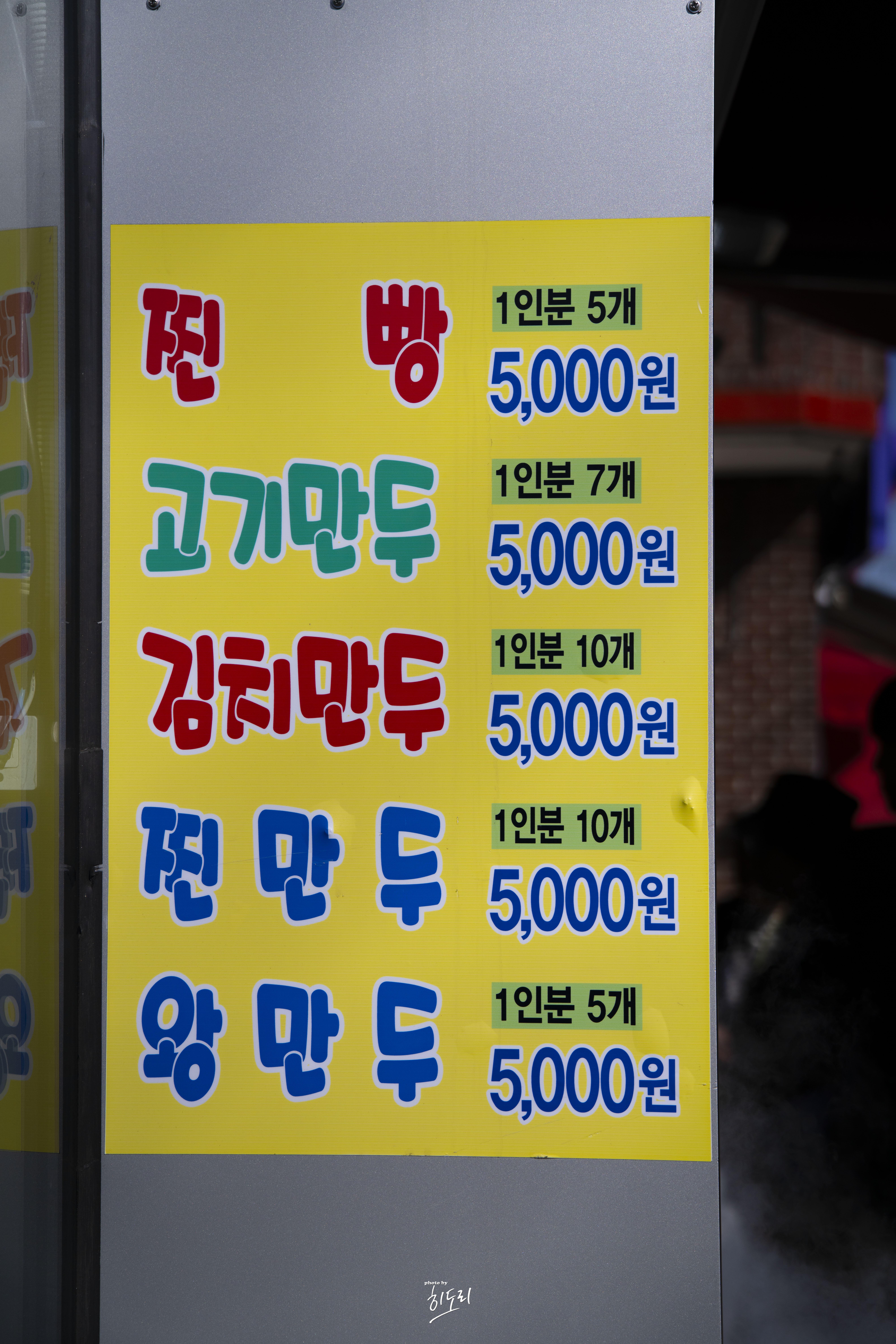가격은 모든 메뉴가 5,000원으로 동일해요. 바로 눈앞에서 쪄지는 찐빵과 만두는 인기가 많아 금방 동이 나곤 한답니다.