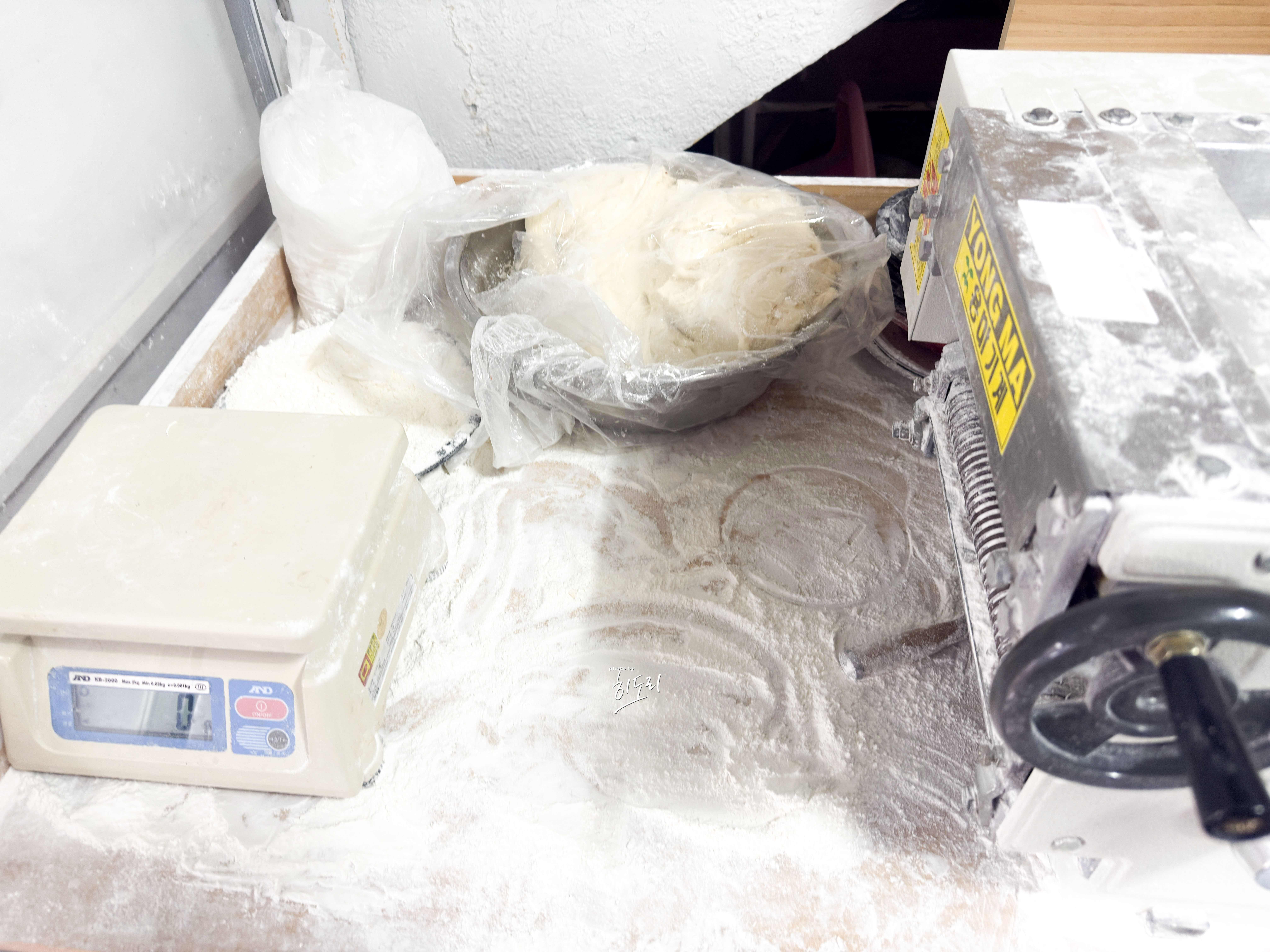 수시로 반죽 누르고 면 뽑는 모습 보니